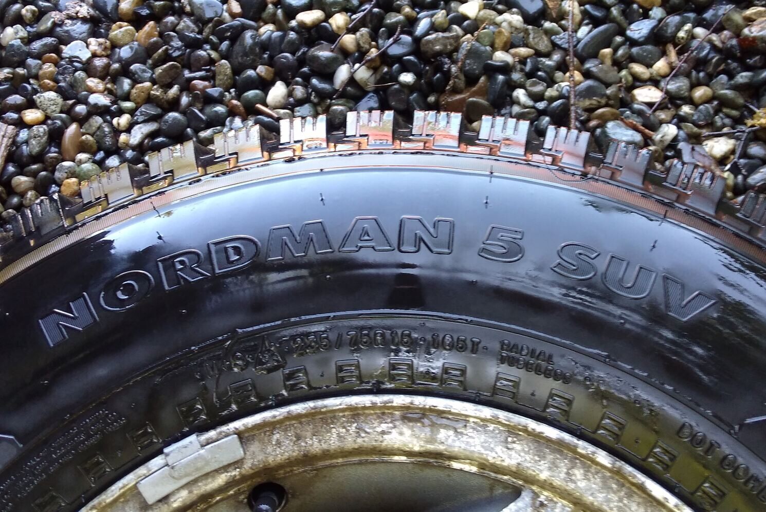 Set of 4 winter studded tires with very low miles. Great condition. Nokian Nordman - 5 SUV. Rims are included, they are 5 stud Ford, balanced and inflated.