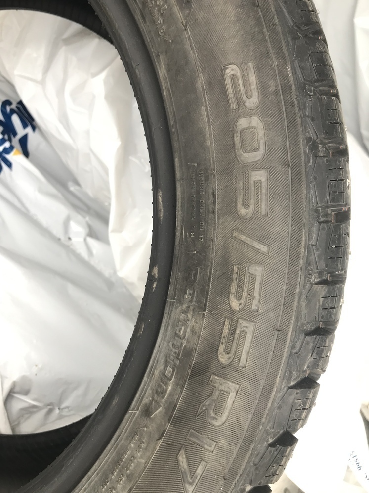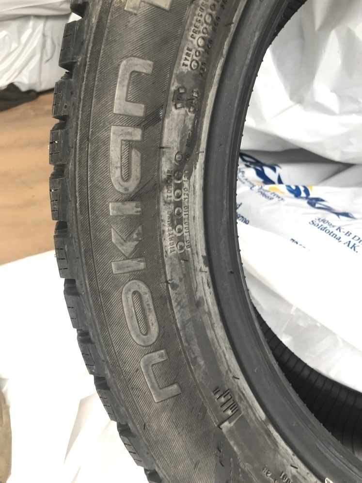 Hakkapeliitta, Nokian studded snow tires, 4 each. Purchased 10/27/2021 from Alyeska Tire. Size 205/55R17. See photos