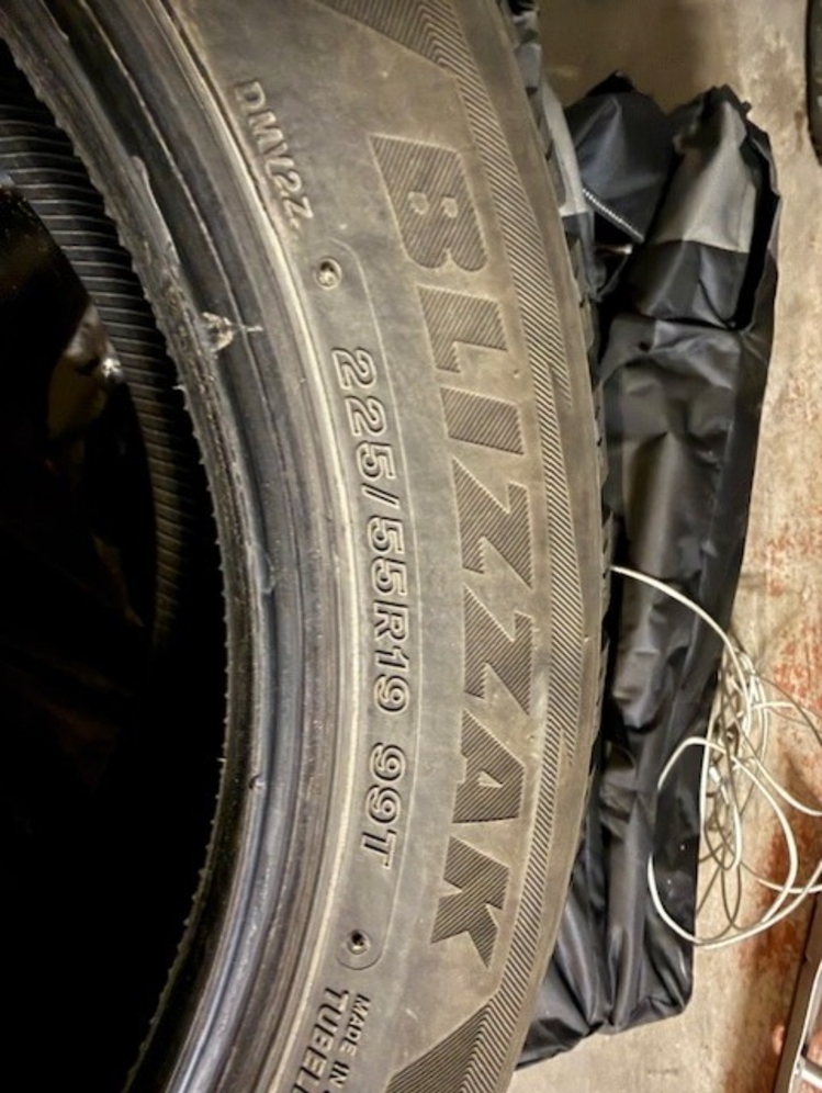 Blizzak 225/55R19 99t Like New. Set of four like new Blizzak tires. Two seasons, but very lightly driven on.