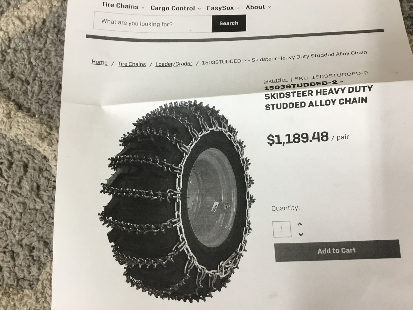 Alloy Tractor Studded Tire Chains-14-17.5 Hns. Been running chains on mountain for over 30 years and these are super made and designed. Purchased 6 Robles’s.New condition.Put on just to test.Moving so no longer needed.Comes with Tighteners.Price is what I paid for .My Kubota rear tire is 14-7.5 HNS.Calls only