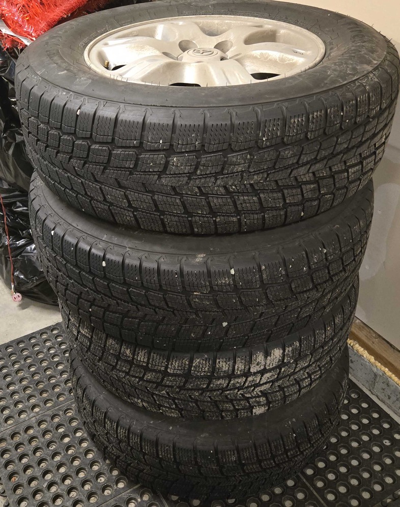 Four Firestone 235 / 65 R16 103T M+S tires for sale on Toyota OEM rims.