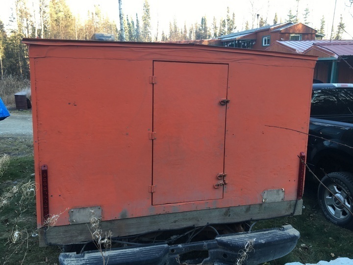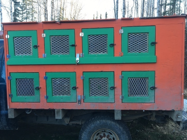 Dog musher box for truck or trailer. 8' long by 7' wide.