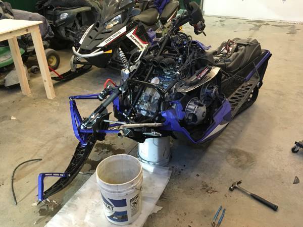 I have a 2016 Yamaha SR Viper RTX LE with 2800+/- miles on it. It has a heated seat and some extras like bags and a hitch. Studded track. It hit a tree on November 8th at around 20mph. Prior to this it was in impeccable condition. I'm attaching a photo of the accident. I purchased new parts to rebuild it and have a photo of the purchase list and parts if you ask for them. The front bulk head was bent back into shape as best as we could. I have photos of the repair. As you can see in a photo the left ski sits about 3 inches behind the right. The tunnel was later found to be dented. It has these structural issues now but is sound mechanically and electronically. I've driven it around town with no issues. I'm including a link to a video of me firing it up. The panels do not secure to each other correctly. This sled is more than a toy for me so I need to replace it. Looking to sell this to someone who wants to fix it up or sell/utilize it for parts. I'll pay shipping on NAC to Anchorage. Shoot me your questions. https://youtu.be/3erkn1GU_OU