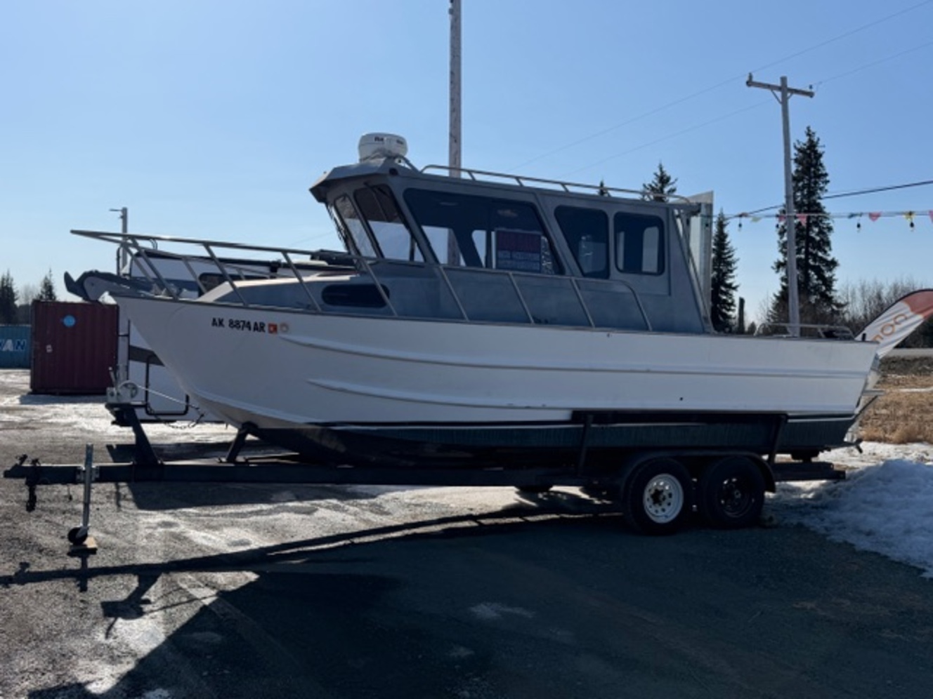 Additional Equipment: Heavy duty trailer, Deck lights, Shower, Heater and defroster, Anchor windlass, Under deck fish storage