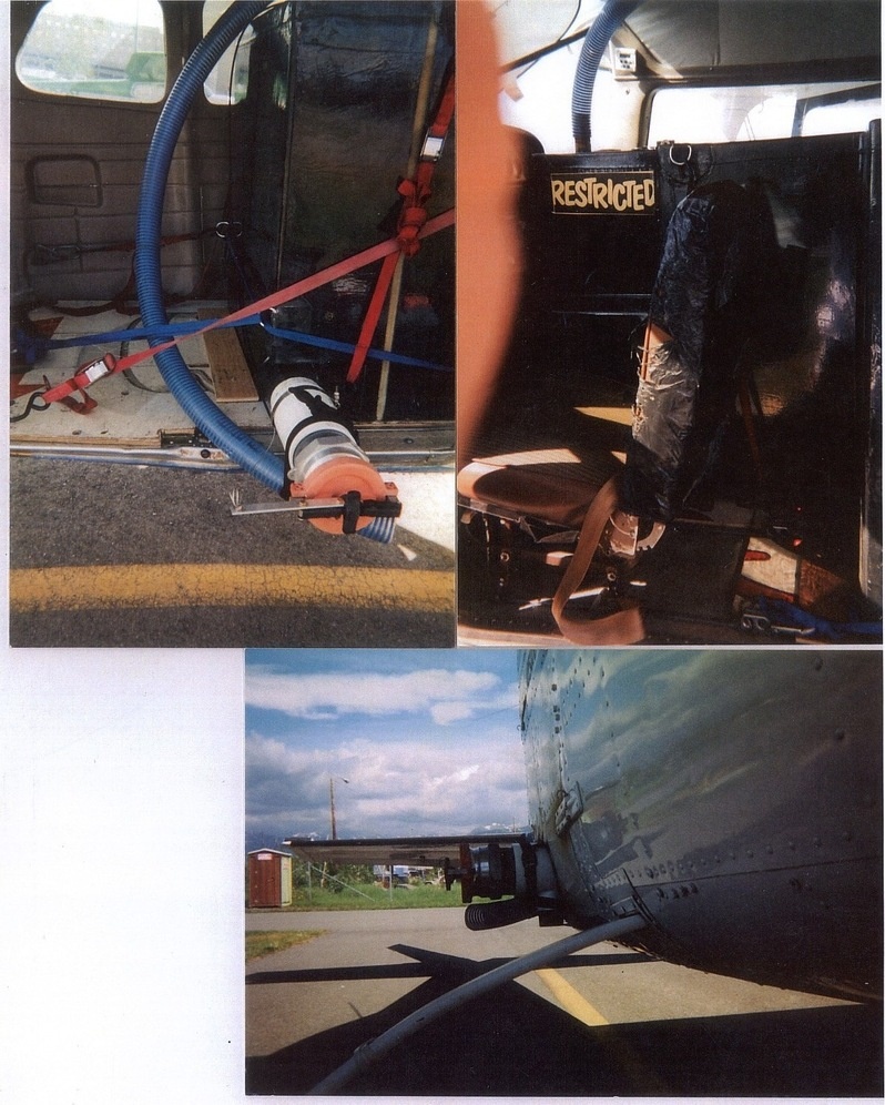 200 gal in-cabin liquid (fuel) transfer tank for a C206. Carbon fiber construction - wt. approx. 90 lbs. Baffled design. 2" camlock low point fitting to load and unload but can also load via two top-of-tank twist caps. Off-loading takes only a few minutes depending on the pump capacity and you will not suck air until the tank is dry. A sight gauge strip to judge fill level is visible at the front cargo door. 4 inch emergency dump valve. Tank is vented to the exterior and forward airflow pressurizes the tank to facilitate rapid dump if needed. Four D-ring tiedown anchors. The tank runs up under the front dash on the co-pilot side to help disperse the load and keep the aircraft within CG limits at all times. Includes a C206 front cargo door containing a dump hole cut-out so no need to cut your current door. Tank was recently modified to fit dual controls. FAA field approval granted. Use this as data to get the same approval for your aircraft. Fabricated by Plaschem in Anchorage. Currently located near FAI.