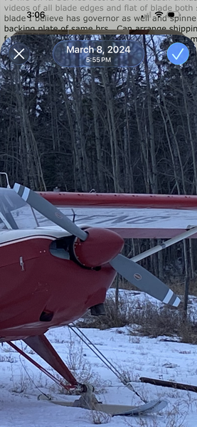 Have a c/s prop exceptionally new looking 10 yrs with only 79 hrs on it. Service record to show each annual have videos of all blade edges and flat of blade both sides. 76 in blade I believe has governor as well and spinner and backing plate of same hrs. Can arrange shipping I have a freight delivery and shipping company so can make it work