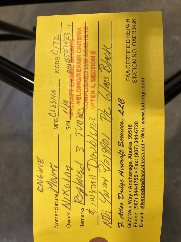 Overhauled Cessna 172 engine mount, fits 172 models I-Q, this mount is also used for 180hp conversion on older 172s. Engine mount overhauled by F. Atlee Dodge.