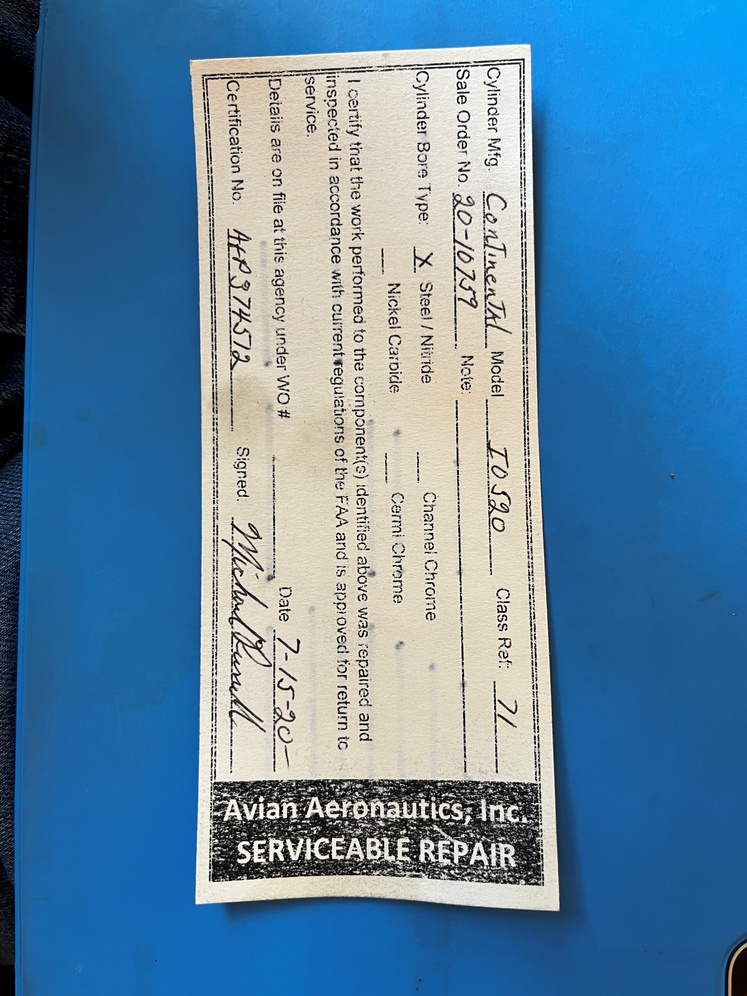 Yellow tagged (2020) cylinder for Continental IO-520A Part # 655469C Serial # AC04FC367 Was a spare cylinder for when a valve burned on our C206, but is no longer needed. Gasket kit included. FOB Seattle