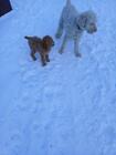 Currently re-homing double doodle puppies. Mother is a pure AKC registered labrador retriever, father is a goldendoodle.