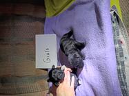 Two puppies left. 1 male and 1 female. The male is a brown and black brindle mix with a white patch on his chest. The female is solid black with ruffled hackles. Both pups were born on 6 September. They have been socialized, dewormed, ,have completed their seco ...
