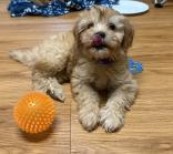 Our mini F1B Golden Doodle puppies are prized for their supreme cuteness & cuddly nature. This designer breed is known for their curly, low-to-non-shedding & hypoallergenic coat, intelligence, and friendly nature. 75% mini Poodle & 25% Golden Retrie ...