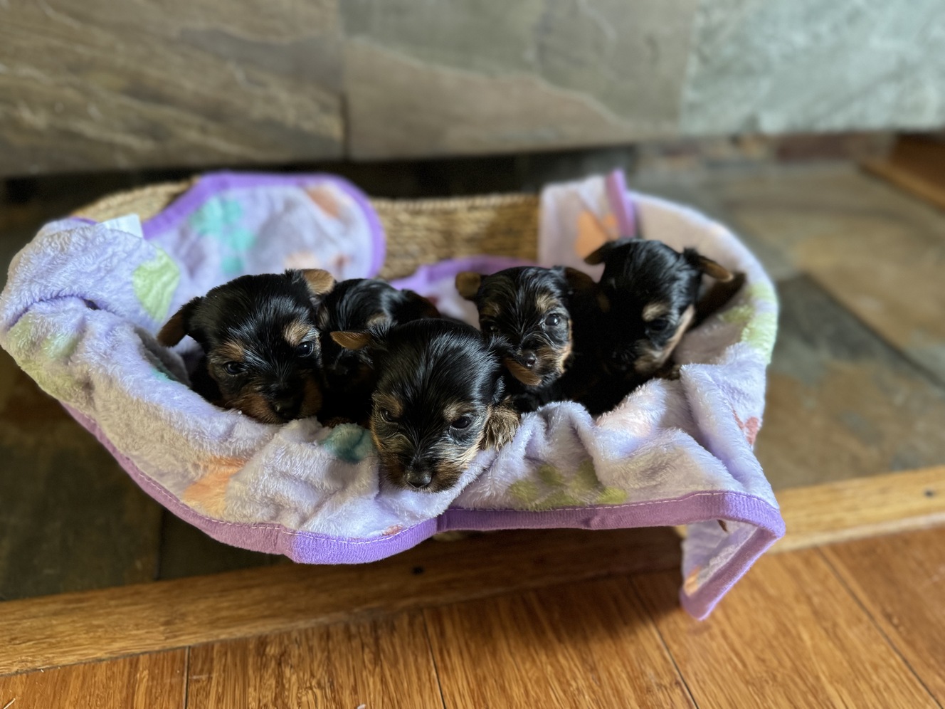 Yorkshire puppies for sell born 9/5/25. We have four females for sell she gave birth to 5 but one is already spoken for. I included a picture of mom and dad. Current on shots and dewormed. PUPPIES will be ready for homes November 1st when they are 8 weeks old. Please contact for more information if needed.