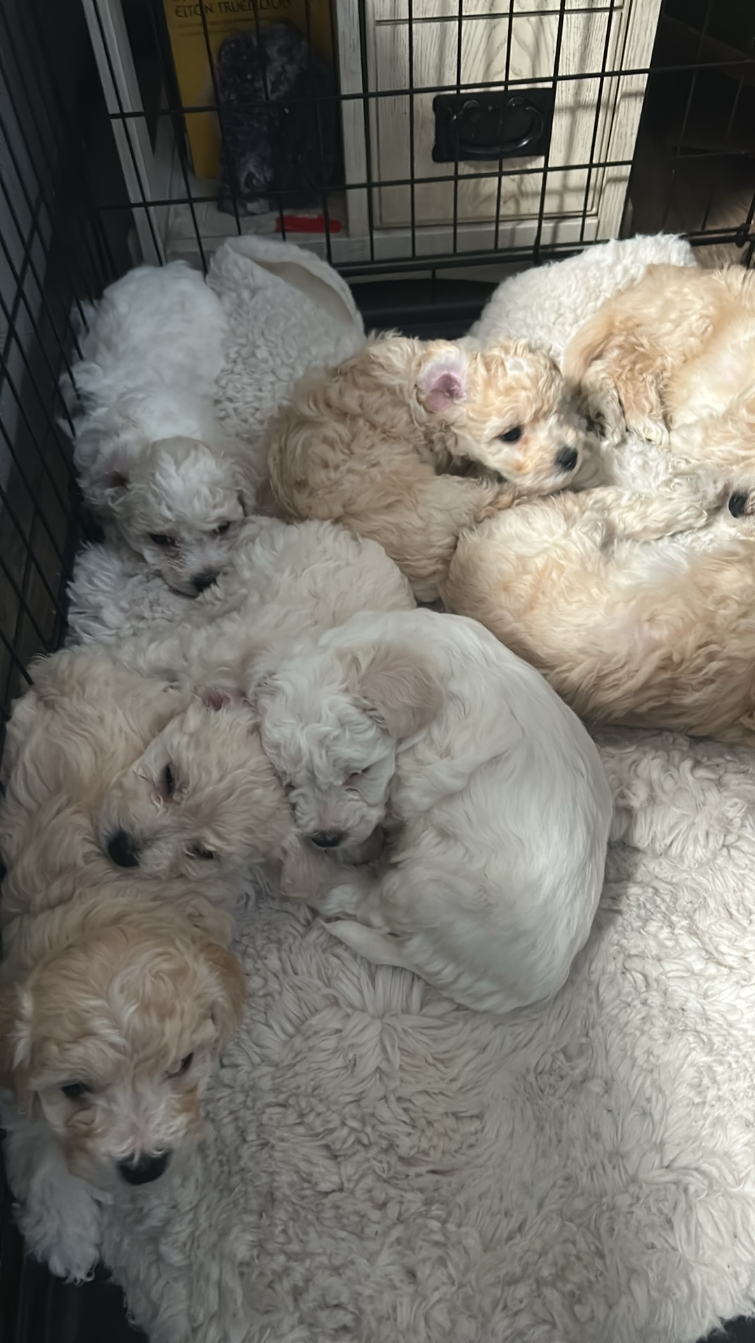 Bichipoos available Christmas. Surprise puppy under the tree!. 5 males and one female available. Mother apricot Bichipoo and father AKC Bichon.