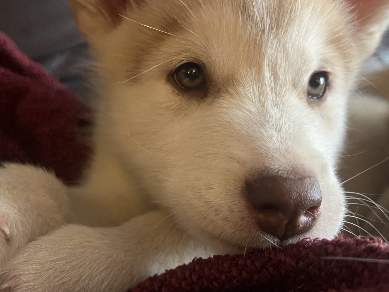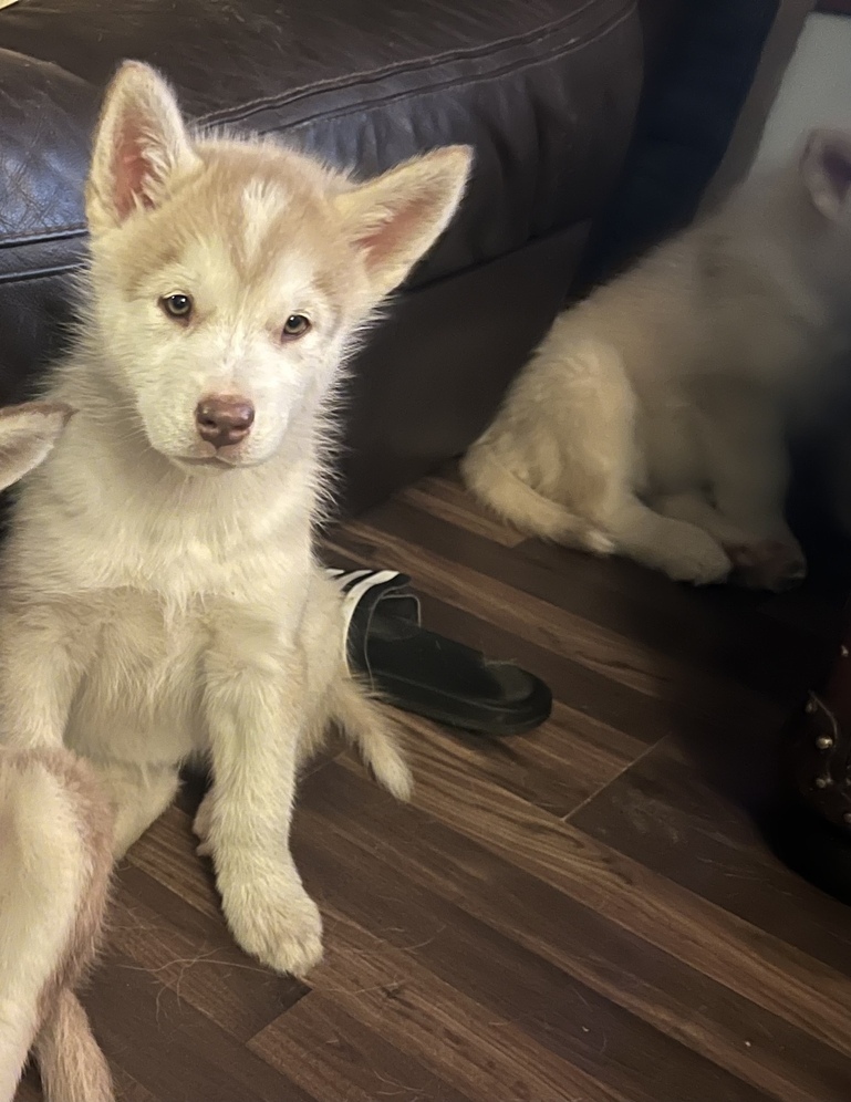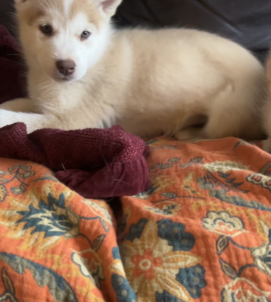 White and Tan Female Malamute Puppy. Last puppy left in the litter. 10 weeks old and born on September 11th. She's a total sweetheart. and loves people. Recently dewormed and ready for her forever home.