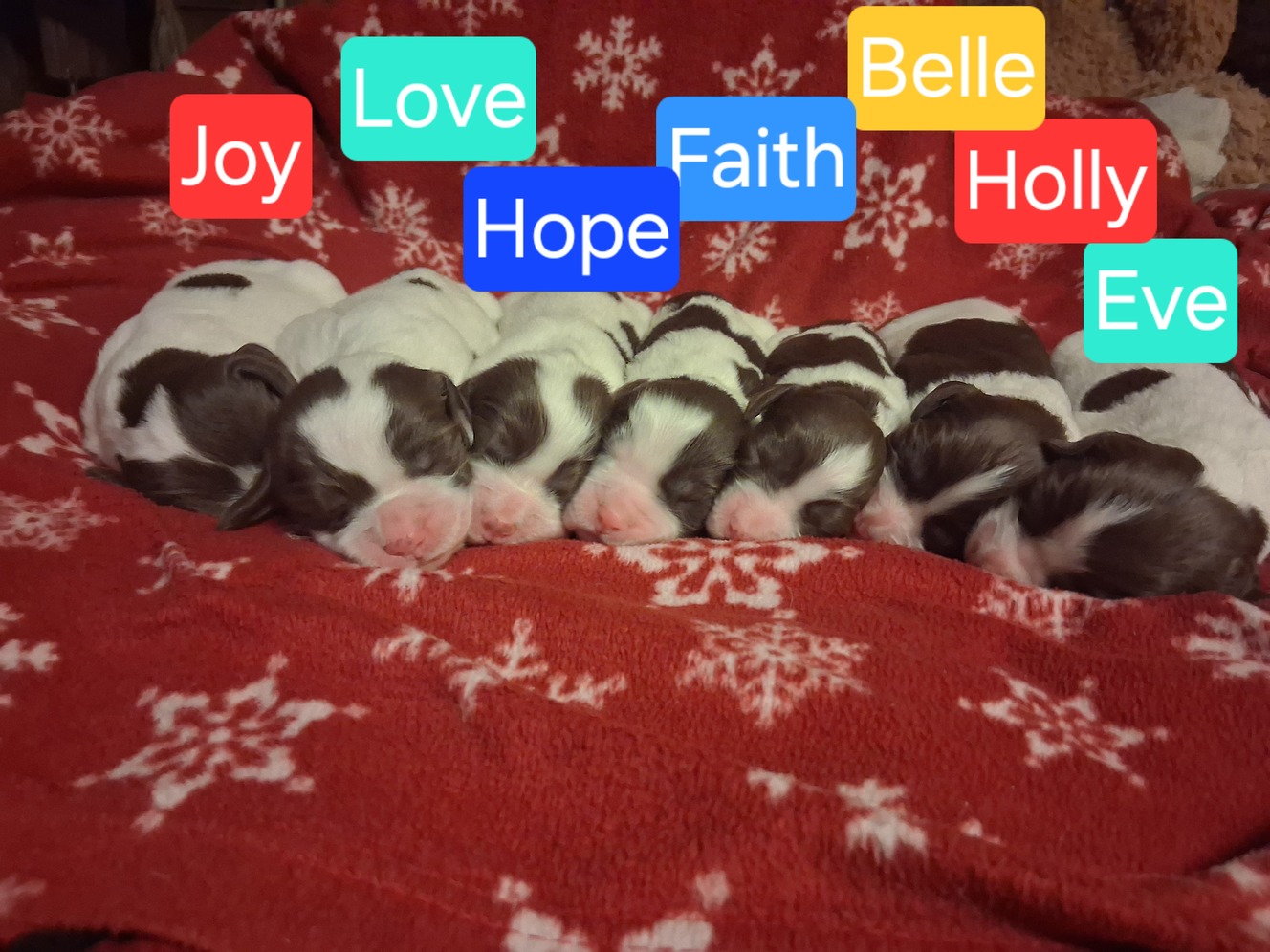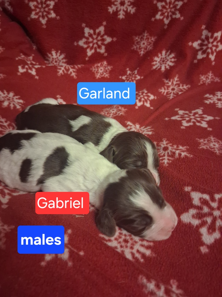 We have a beautiful litter of English Springer Spaniel Puppies! Just in time for Christmas! We have 7 females and 2 males! Taking $200 deposits now! The dam and sire are AKC English Springer Spaniels! Both are sweet and smart! They have great temperaments! The puppies come with dew claws done and tails docked. Come well socialized! Also come with a blanket and toy. And come with 1st shots. Come with AKC limited registration (pet homes only) English Springer Spaniels are eager to please and easy to train! They are smart and attentive also obedient! So make great service dogs! Also awesome family dogs! And great companions! And can be great hunting dogs! Ready January 10t.h