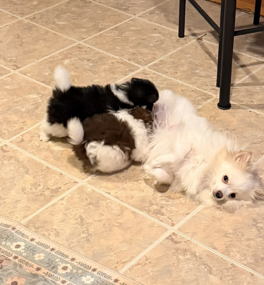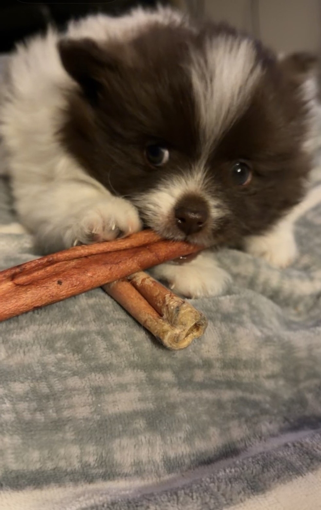 I have two precious Pomeranian puppies for sale, they were born on the 19th of october and will be ready to go to their furever homes on the 13th of December! One is a boy(brown and white) and one is a girl(black and white). The girl is a very playful and loving puppy who will chase you all around the house. The boy is a bit on the shy side but once he warms up to you he will be your cuddle buddy every night! I am asking for 1300$ for the girl and 1200$ for the boy, but i’m willing to negotiate. Willing to travel to fairbanks area. All white pom is the mom and the brown, white and black one is the dad.