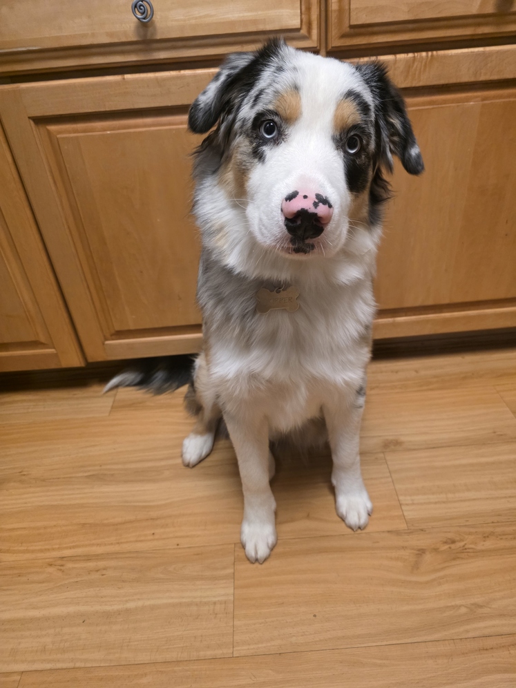 Approximately 8 month old male Australian Shepherd named Skipper, after Penguins of Madagascar. He has not yet been neutered due to age and did come with papers if I can locate them.