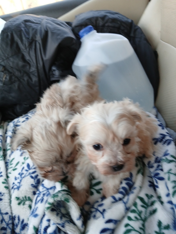 Yorkie and Toy Poodle Puppies. Two little brothers that are 5 weeks old. They are very sweet and cudly. Taking deposits now to hold until Christmas or two more weeks. Mom is a white toy poodle, and dad is a yorkie.