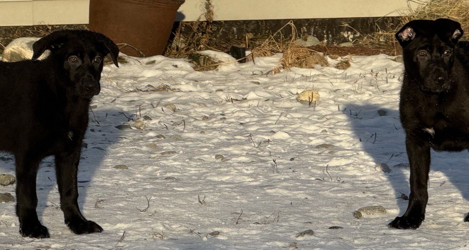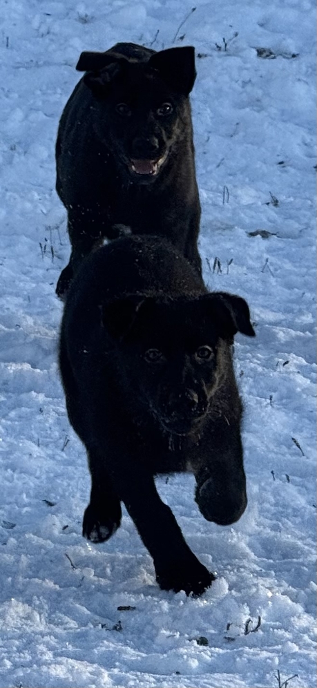 2 Puppies Left!! 1 male and 1 female. Both have just received their second set of DAPP/ Parvo vaccinations and come with updated individual records. They were born 6 September. These two adorable sweeties have been socialized and love playing with the kiddos. They are smart, witty, quick learners eager to please. The male is brownish black with a brindle coat and star on his chest. The girl is black with a small white patch on her chest. They are growing fast, love attention and are ready for their new forever homes. Both parents will be available and on site upon request. Mom is all black German Shepherd, and Dad is half Dutch Shepherd mixed with Staffy and Lab traits.