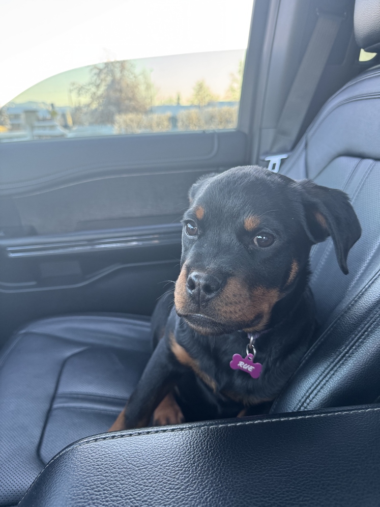 5 month old female Rottweiler. Has all shots up to date. Not spayed. Potty trained with doggy door. She’s good with young kids and other dogs. Unsure on rehoming her but feel free to text if interested.
