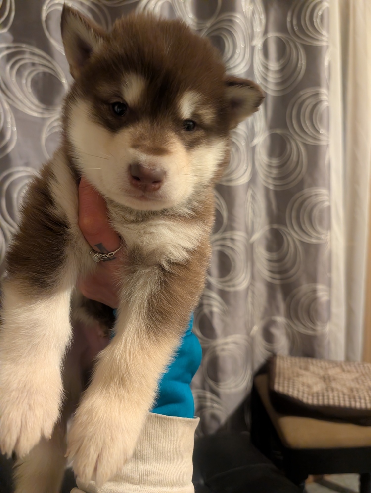 Alaska Malamute Puppies for Sale. Born Nov. 24, 2025 Both males and females available. Litter of 6, four still available. Colors Red and white (2 males, 1 female) Black and white seal (female) Sire: Run of the /river's K2 Poacher (UKC Registered) Dame: Run of the /river's Kokanee (AKC and UKC Reg.) Breeding rights available for additional $500.00 $1500.00 per puppy. $500 non refundable deposit to hold a puppy. Breeders choice, $2000.00.