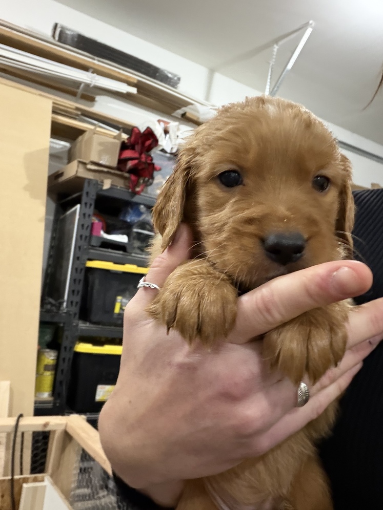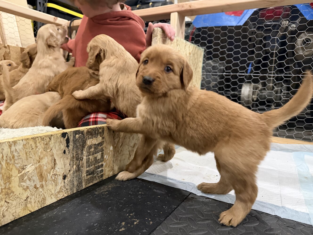 Sweetest golden retriever puppies! 6 females and 2 males. Mom and dad are healthy. They'll have their first round of shots and checkups. They've been raised around kiddos from day one and are loved on everyday!