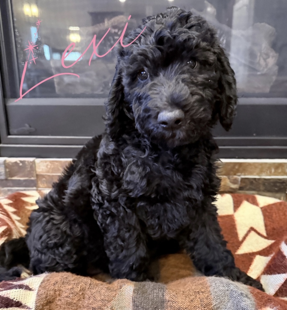 We have 1 female F1b Labradoodle left. Both parents are health tested. The site is a carefully chosen Moyan Tri-color AKC poodle. The dam is a F1 silver Labradoodle. Lexi is 12 weeks & ready for her home. She sleeps well all night in her kennel, learning to come when called, understands drop & no. Now working on sit & wait. She is potty trained using pellets & lets me know when she needs to go. She’s cuddly & playful with her mom & a Goldendoodle. She is up to date on current vaccinations. She will go home with a complete puppy bag with essentials as well as what’s left of her puppy food.
