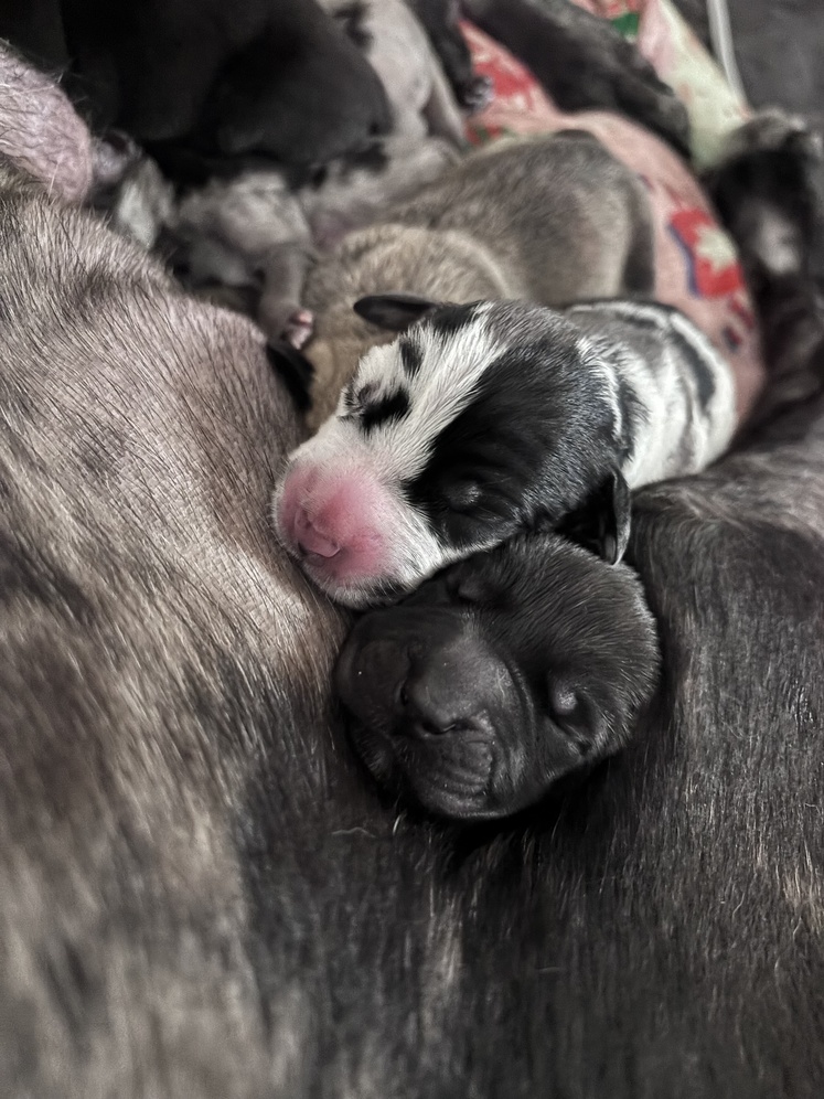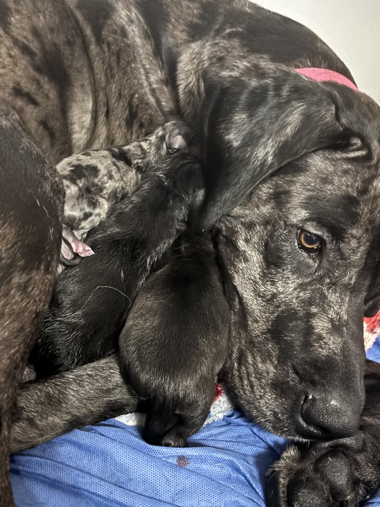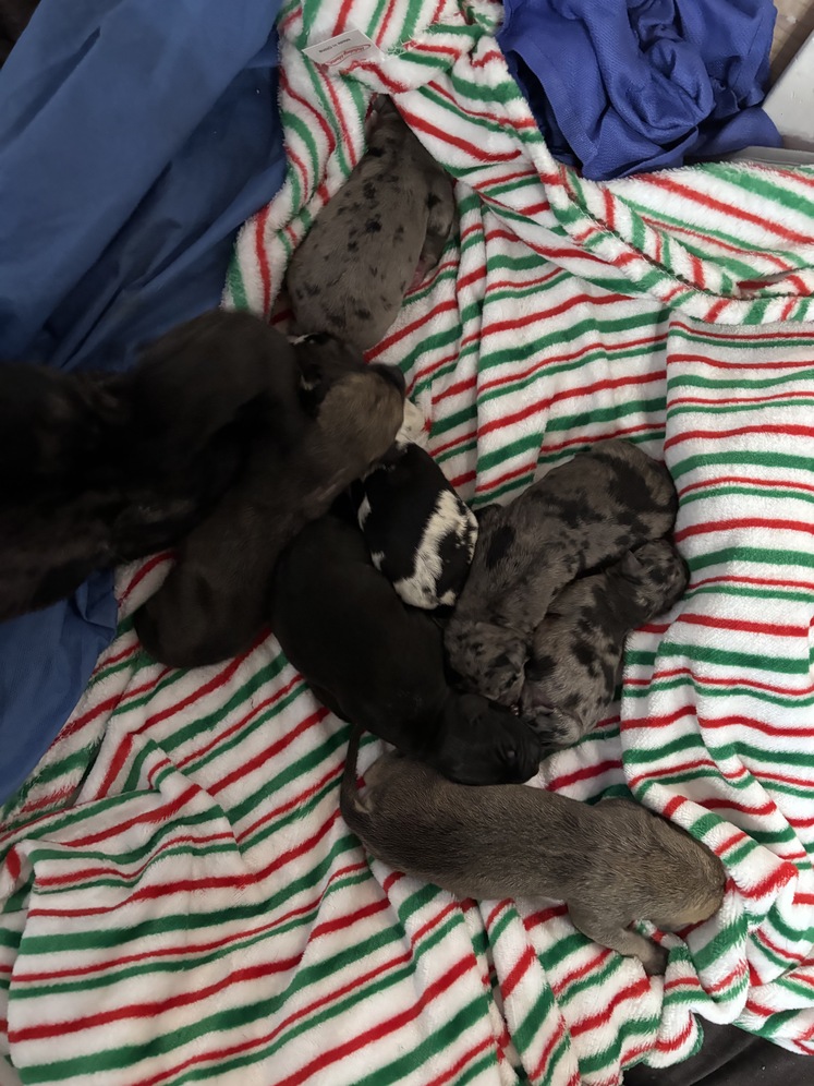 I have 8 puppies, 4 male, 4 females born today. Mother is a Merle Great Dane/mastiff and dad is a fawn mastiff. Pups were born 12/28 There is a deposit, I can send more photos of each pup as requested.