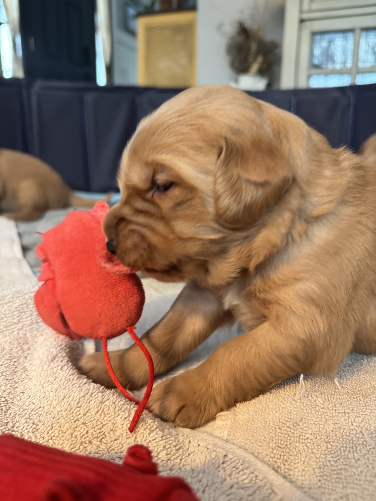 We have beautiful purebred Golden Retriever puppies available the week of January 12. These pups are being raised in our home and are well-socialized with daily family interaction. Golden Retrievers are known for their gentle temperament, intelligence, and loyalty, making them excellent family pets. Visitors welcome to meet the puppies and mom. Four males available - will Update ad as the number changes. If you’re looking for a loving companion to join your family, these puppies would be a wonderful fit. Message for details and to schedule a visit.