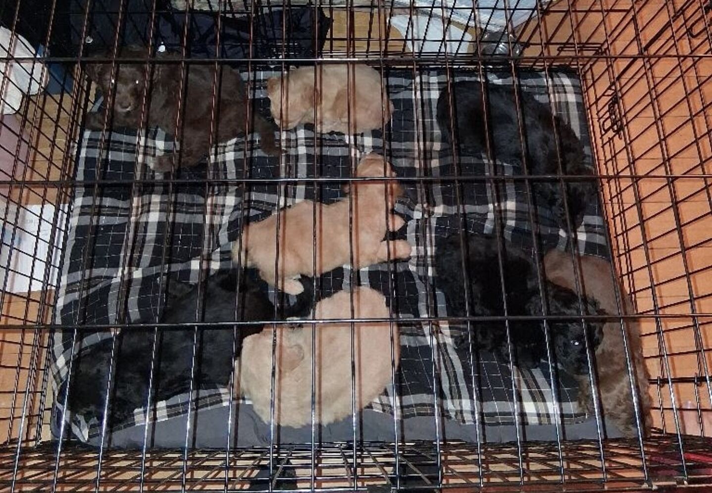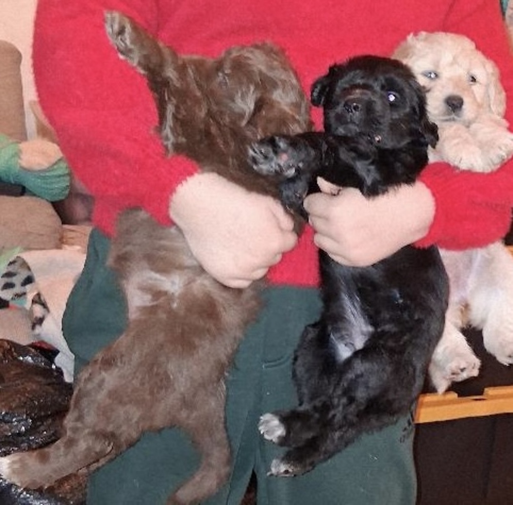 Mom is an Australian shepherd mix. Dad is a doodle but is the neighbors dog and we do not have pics of him. There is three lite tan females. One solid black female. One black male with white fur on the chest. A lite brown female with white on her chest. A dark brown male with white on his chest and paws. They were born 11/12/2025 Call or Text is best but will answer email