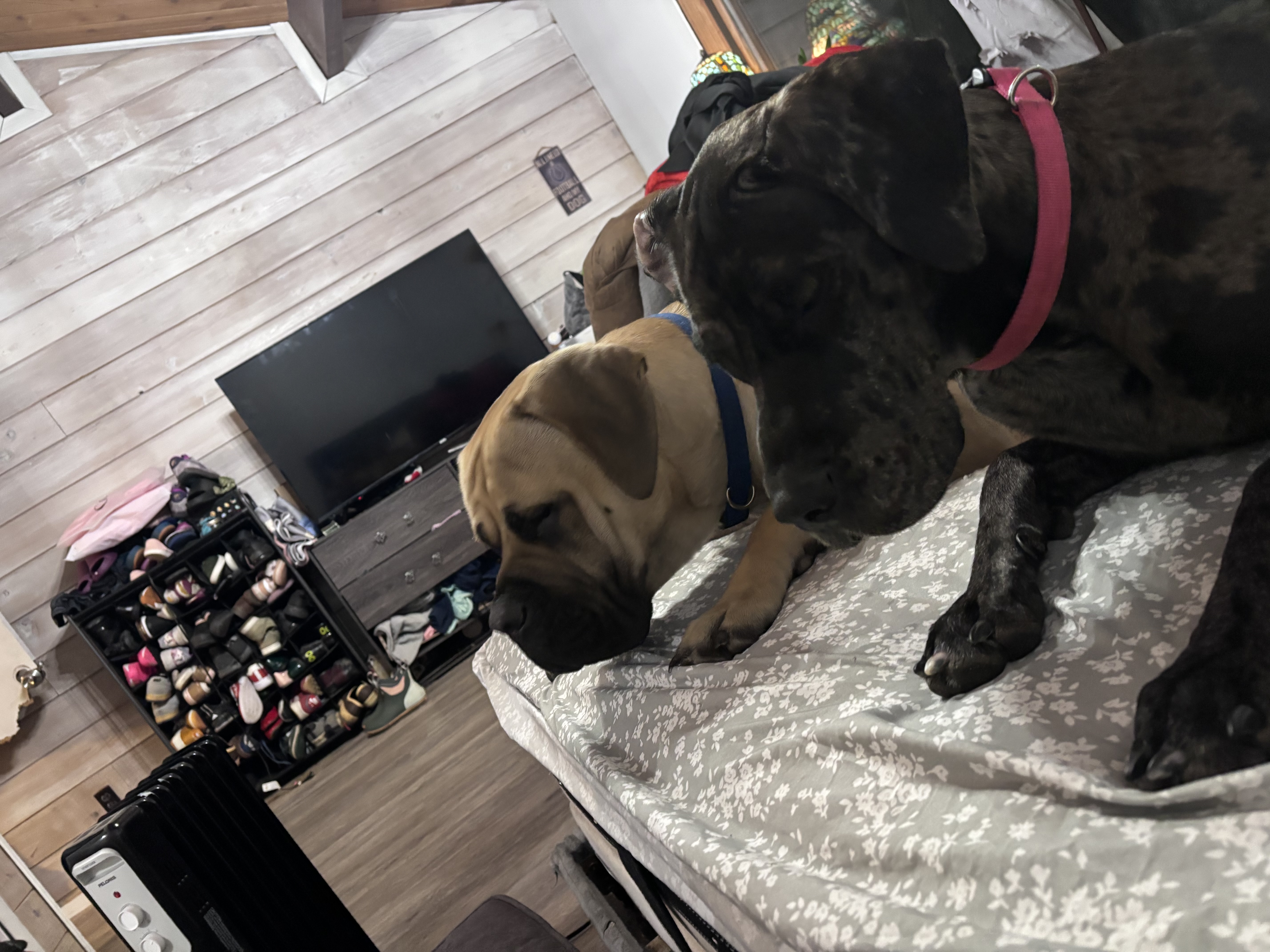 Super sweet babies, raised inside next to my bed! Mom is. Dane/ mastiff and the dad is a mastiff. Lots of fun colors and sweet personalities They’ll be looking for homes at the end of February! They are large breed dogs, and require someone who knows how much love they require! Let me know if you’re interested. I have tons more pictures and videos upon request 1-907-741-7320