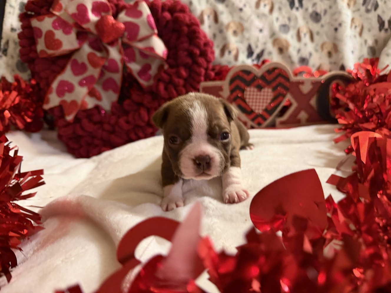 Boston Terrier boys available 1 red 1 lilac Pups have a 1 year health guarantee 1st Vaccination 3x worming Ready to go home Jan 27th