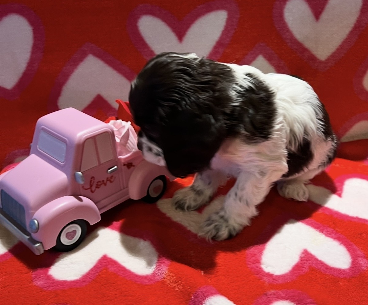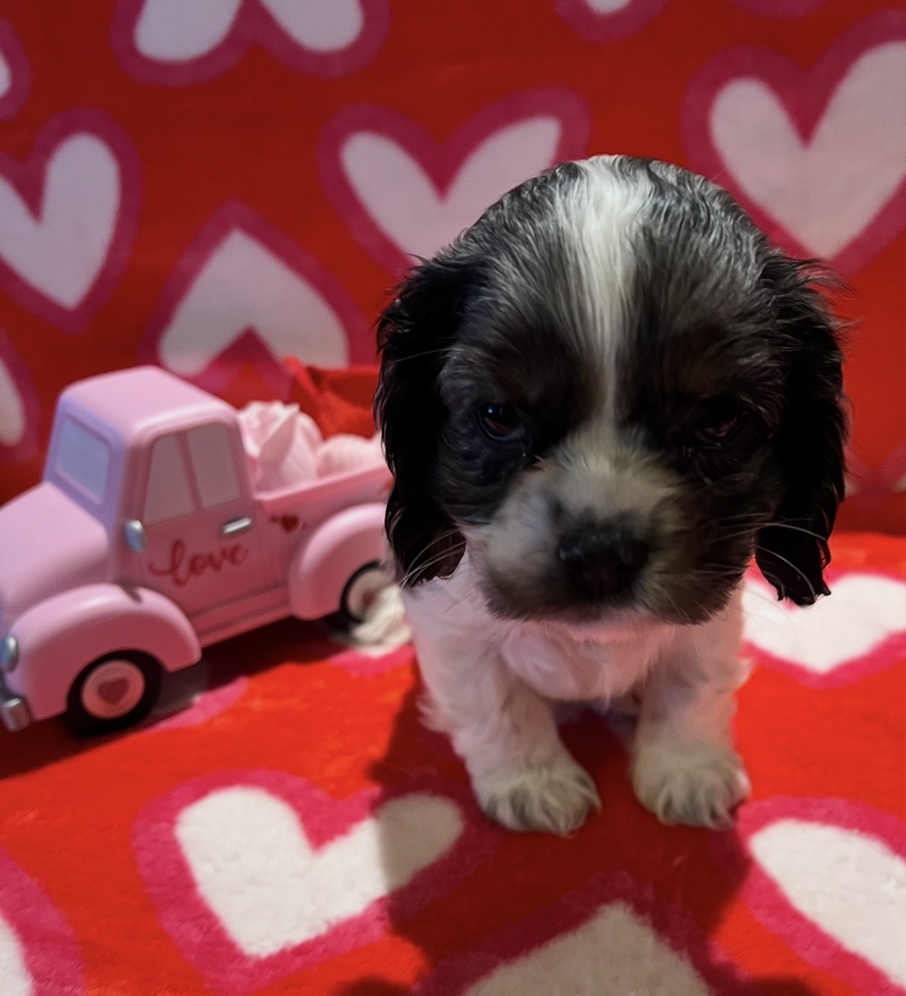 Here at Arctic Rose Cockers we just welcomed our winter litter on 12/21/25. This is our last litter so get one of these beauty's to join your family. We have 3 beautiful girls and 1 handsome boy left. These puppies will grow to be outstanding American Cockers with a wonderful temperament. We are now accepting $400 nonrefundable deposits and the rest will be due before picking up your pup. Puppies will be available for their forever homes on 02/15/26 at 8 weeks of age. What's included… Best Friend for Life AKC Limited Registration (Pet Home Only) Vet Checked,Dewormed and Vaccinated Tails Docked Intro to the Crate and LOTS Of Socialization Liver/White Girl, Grey/Merle White Girl, Black/White Girl and a Grey/Merle White Boy Texting will get you a faster response Delivery is available to Palmer/Wasilla with a fuel charge/time. Please do your research on this breed. If you can't afford to get a Cocker groomed every 5-8 weeks then this is probably not the dog for you.