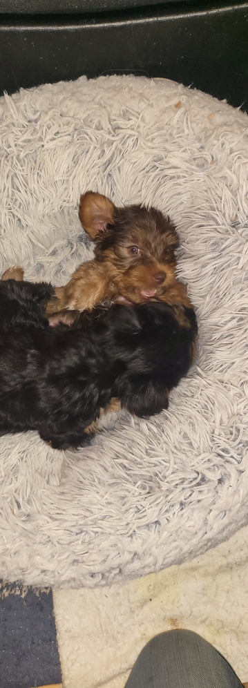 We have 9 week old yorkie puppies 3 are black & tan and 2 Chocolates brown & tan. They are all boys that love love and they are ready for homes today. They come with papers and first shot. Live in wasilla and willing to meet somewhere ez.