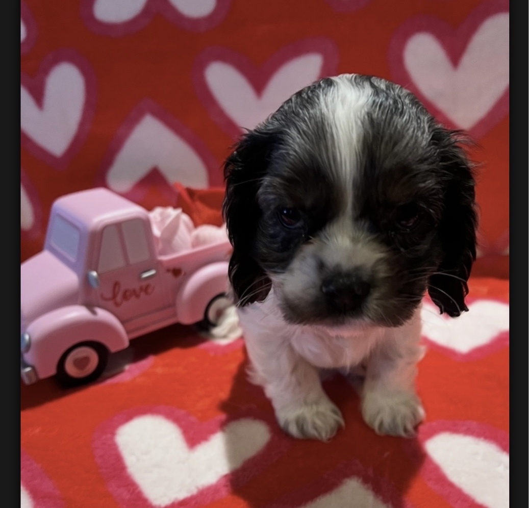 Here at Arctic Rose Cockers we just welcomed our winter litter on 12/21/25. This is our last litter so get one of these beauty's to join your family. We have 3 beautiful girls and 1 handsome boy left. These puppies will grow to be outstanding American Cockers with a wonderful temperament. We are now accepting $400 nonrefundable deposits and the rest will be due before picking up your pup. Puppies will be available for their forever homes on 02/15/26 at 8 weeks of age. What's included… Best Friend for Life AKC Limited Registration (Pet Home Only) Vet Checked, Dewormed and Vaccinated Tails Docked Intro to the Crate and LOTS Of Socialization Liver/White Girl, Grey/Merle White Girl, Black/White Girl and a Grey/Merle White Boy Texting will get you a faster response Delivery is available to Palmer/Wasilla with a fuel charge/time. Please do your research on this breed. If you can't afford to get a Cocker groomed every 5-8 weeks then this is probably not the dog for you.