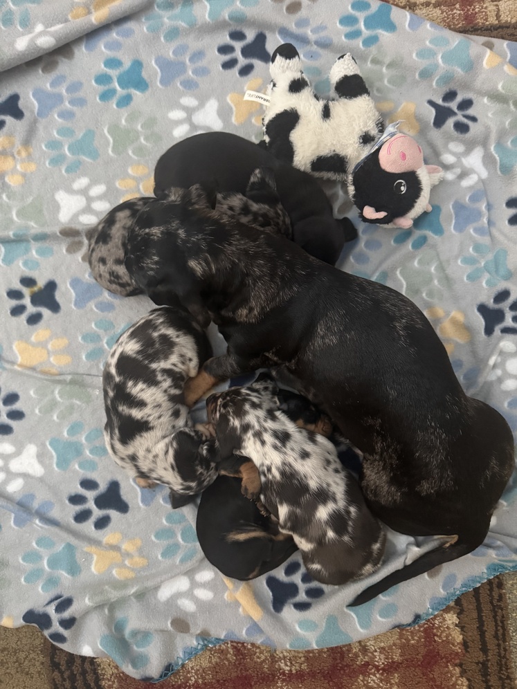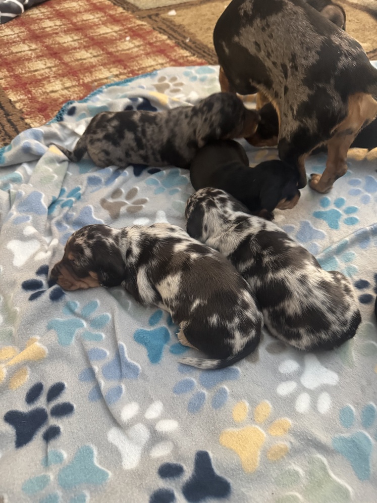 1 male and 1 female Black and tan left. Ready for new homes on March 16! This litter was born on January 19, 2026. 5 beautiful pups (3 dapple and two black and tans). ALL DAPPLES ARE SOLD. Mom is dapple/ dad is Black and tan. No papers. I bought mom from a breeder out of Canada and both parents have amazing temperaments. Pups will be vet checked at North Pole Vet Clinic and have first set of shots. $500.00 non-refundable deposit required to hold.