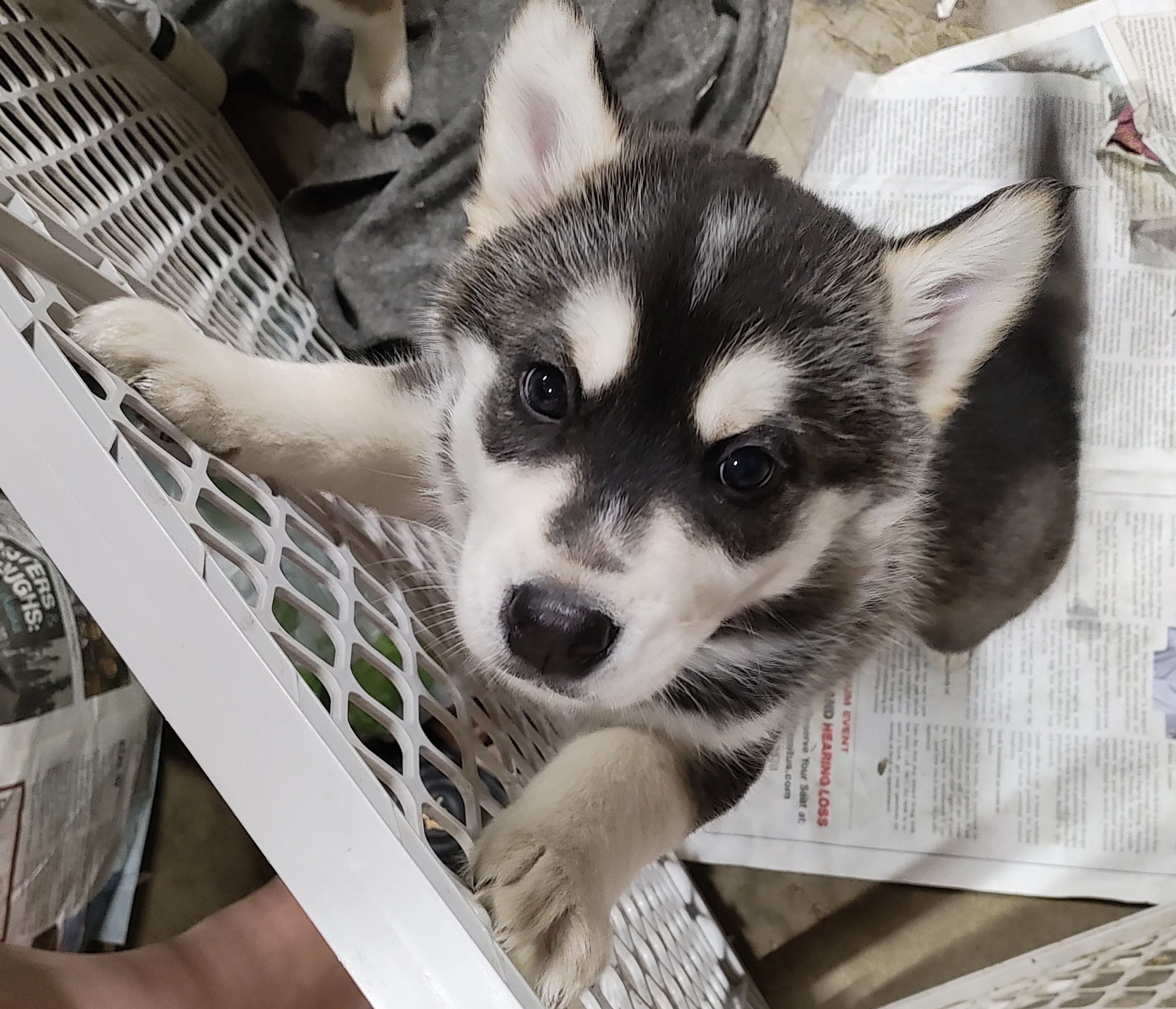 Born on 12/24/25 Puppies are ready to find their forever homes. 4 puppies, all males. They have their first shots, are paper trained and weaned from mom. They have been around kids and other dogs. Mom is a Siberian Husky and Dad is a Mackenzie River Husky/Blue Heeler mix, mom and dad are on site. Their markings are very unique and changing as they grow. Asking $500 rehoming fee to the right home.