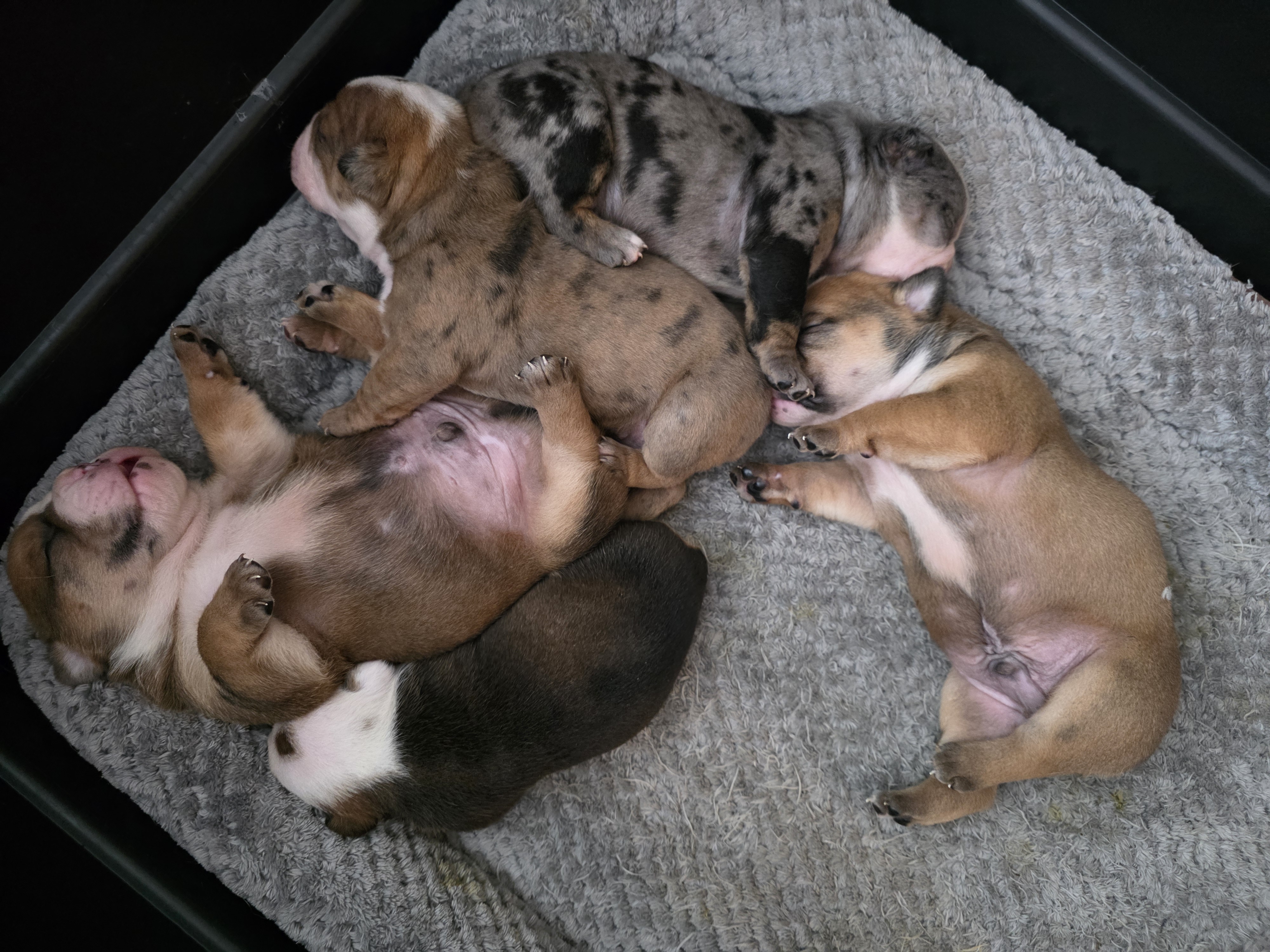 We have 4 beautiful Olde English Bulldogge puppies looking for their forever families! These pups are being raised in a loving home environment and are well-socialized with people and everyday household activity. Both parents are IOEBA registered