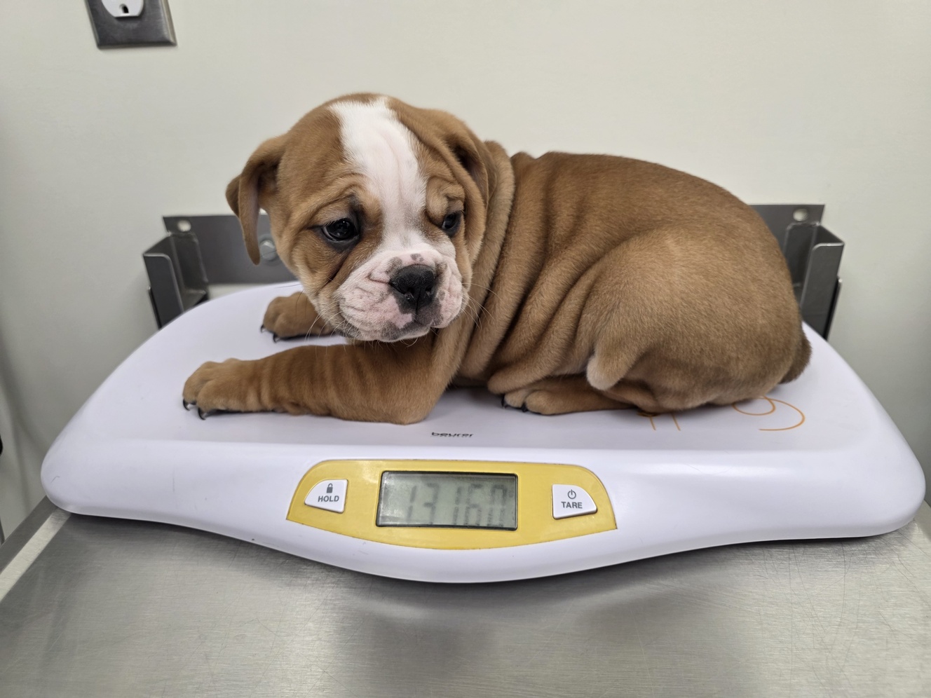 We have 1 beautiful Olde English Bulldogge puppy left looking for their forever families! His name is Bruno. Bruno is being raised in a loving home environment and is well-socialized with people and everyday household activity. Both parents are IOEBA registered
