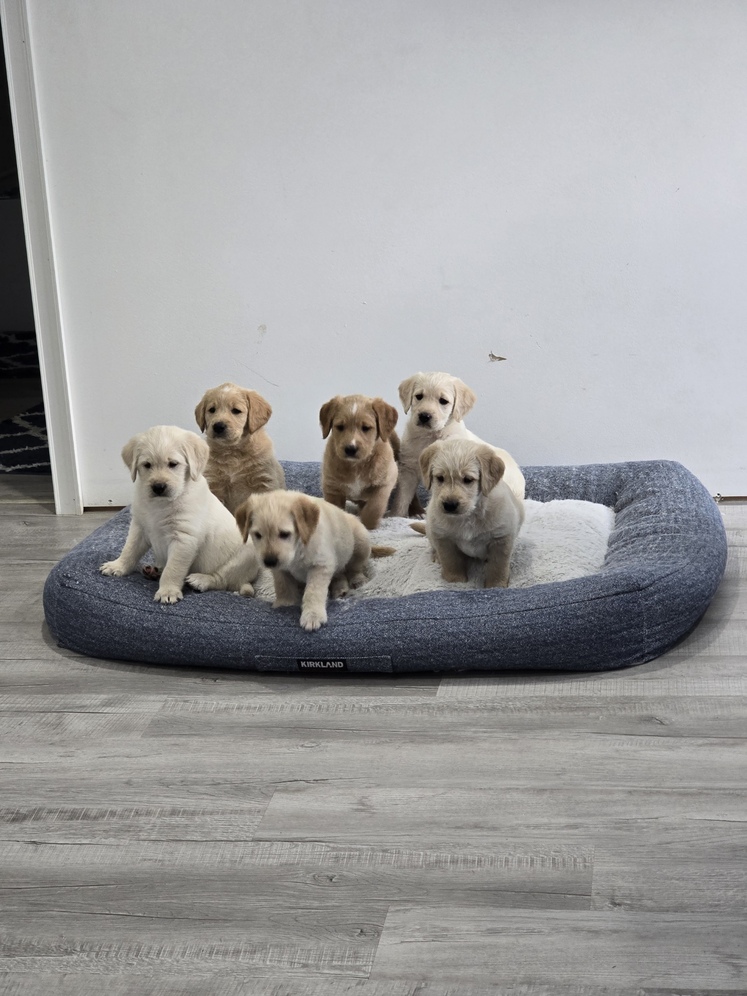 Currently re-homing double doodle puppies. Mother is a pure AKC registered labrador retriever, father is a goldendoodle.