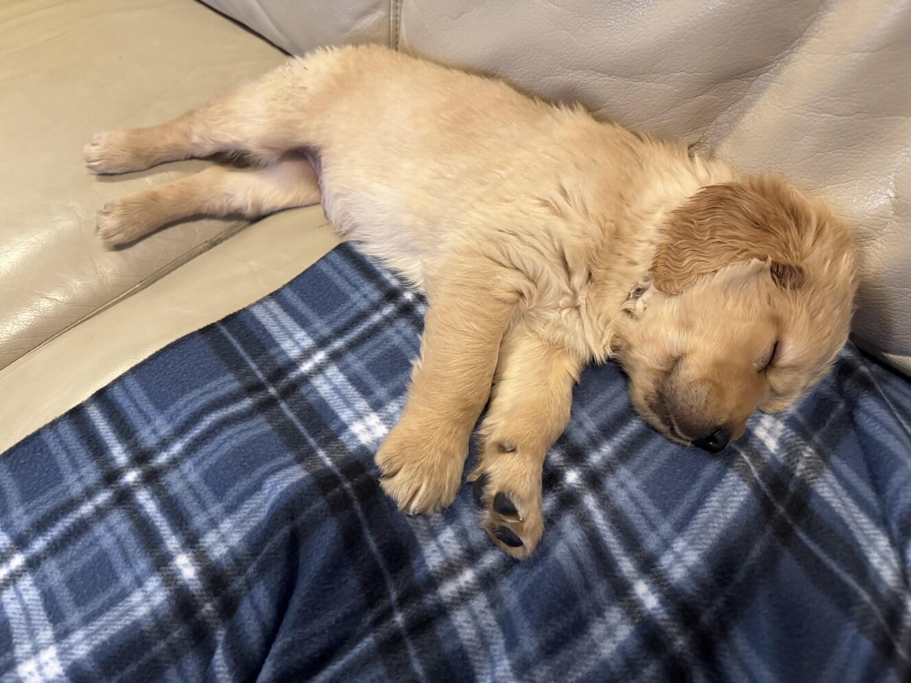 Purebred Male Golden Retriever puppy, 8-weeks old on 2/20/26, has had first shots and is ready to go to his new home. Both parents are AKC registered. He was the first pick of the litter - the biggest male. I got him from a breeder in Wasilla. He walks on and off leash really well, loves to play fetch, is super sweet and cuddly, and is perfect in every way. Unfortunately, I realized that I made a mistake because I travel too much for work. I paid $1850 plus $500 in gear. Selling the pup for $1500.