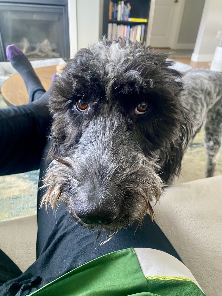 Sweet Golden Doodle Mix Needs New Home. Sprocket is a 2 yr old male Golden Doodle mixed with a Wire-haired Pointing Griffon. My husband and I have had him since he was a puppy. He is house trained and crate trained. He’s a super sweet dog, very social and affectionate and he loves everyone. He also has quite the nose for sniffing out grouse and we have bird hunted with him successfully. It is difficult to part with him, but we are looking for a new home for Sprocket due to allergies and medical issues with our child, and changes to work/family schedules. Sprocket does well with children and other dogs, and he has been exposed to cats as a puppy and did well with them at the time. He loves to chew on bones and play fetch, and he also loves snuggling on the couch and just being close to people at all times. He is a large dog and weighs 80 pounds. He is up to date on all shots and has been neutered. He would make a fantastic family dog or a close companion to anyone looking for a canine friend.