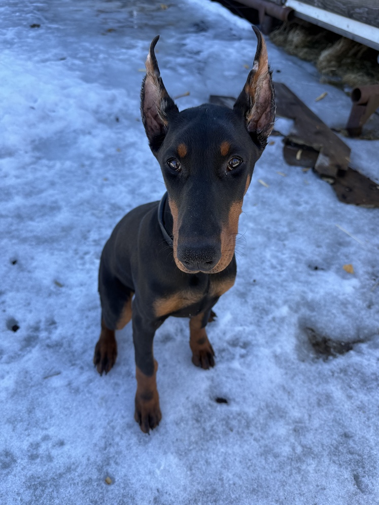 OR BEST OFFER !! Very well bred female Doberman puppy , 4 and half months old, UTD on everything, ears cropped, tail docked, dew claws removed, comes with all AKC papers, and a microchip and chip tag, never registered her so can start clean and fresh! She’s crate trained and has been doing great with training knows all the basics and has a lot of off leash training, great recall, it great with other dogs and people, never been around cats , I’ve got her from one of the best breeders in the US, all genetic and health testing done will be the healthiest dog, you pay for what you get except discounted ! Breeder is more than willing to take her back but shipping cost to take her back is costly and needing the funds to move back home with sick family I have to help take care of and the farm, I’d love to take her with me, but they have a very unfriendly dog on premises and will not work out , I have all the papers and info, please only message me if you are truly super interested, I have no time for tire kickers, I love her so much, she’s my dream girl but everything has taken a turn for me , for more breeder info and more info on this adorable pup, please don’t hesitate to reach out ! Also- she comes with no breeding rights from the breeder.