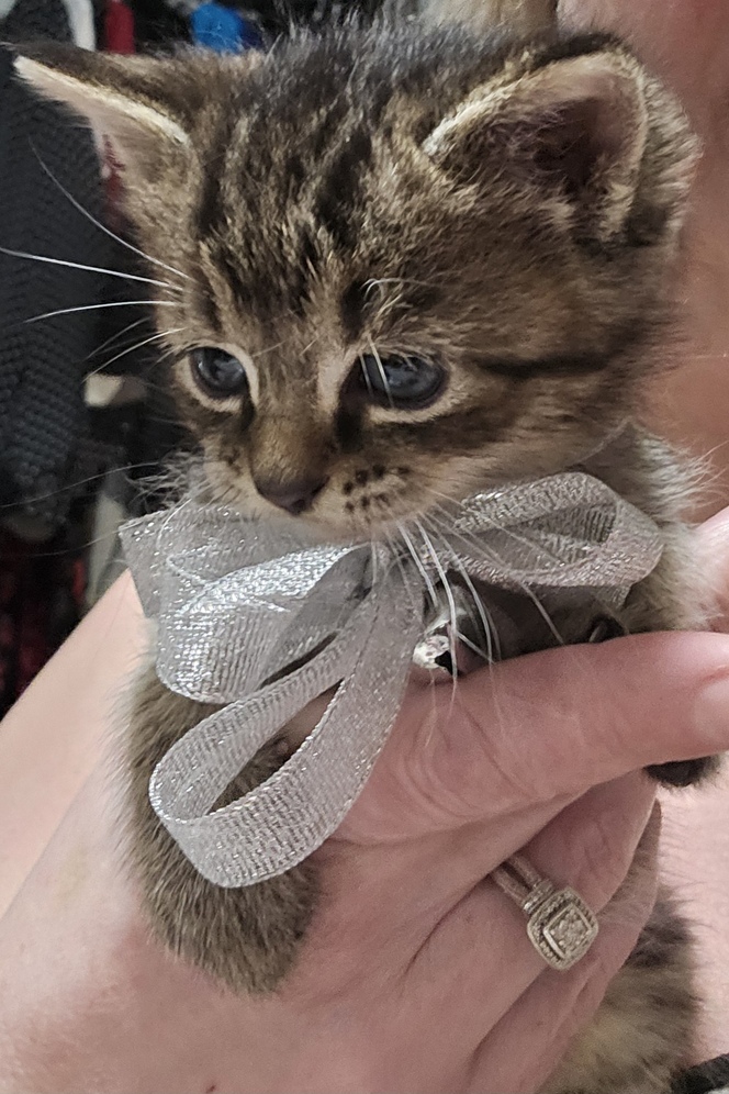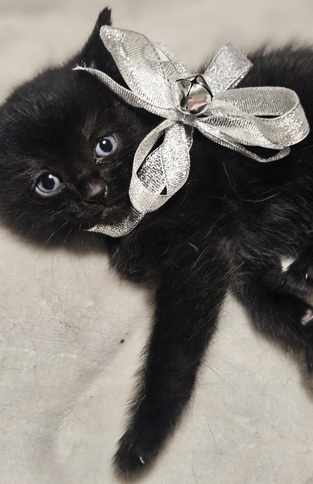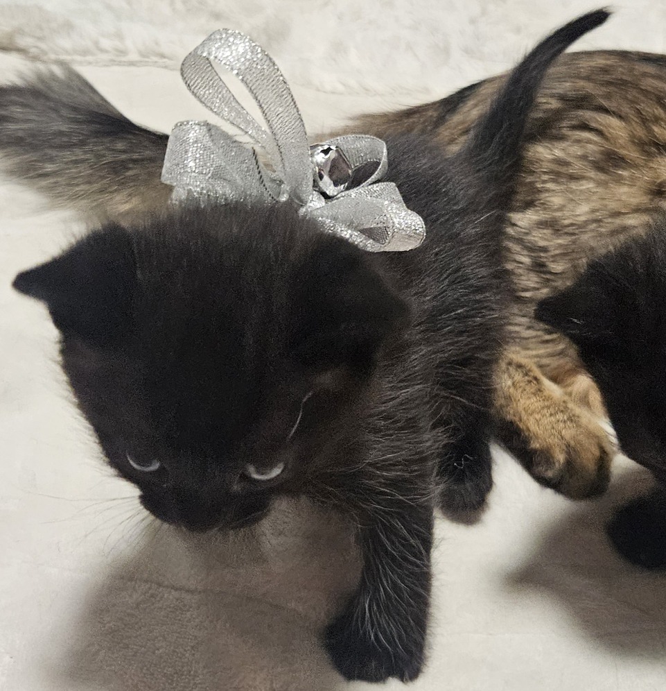 Adorable kittens looking for their forever homes. Born November 6, 2025. These babies will be 7 weeks old on Christmas Day. Im not sure yet if they will be ready Christmas Day. Mom is over it and weaning them. They have started solid foods and water, introducing the litter box. These cats will stay fairly small. Mom is very small and there were inly four in the litter. Fluffy striped is a boy. Smaller striped is a boy. Fluffy black is a boy. Shorter hair black is a girl. Asking 200. Rehoming fee