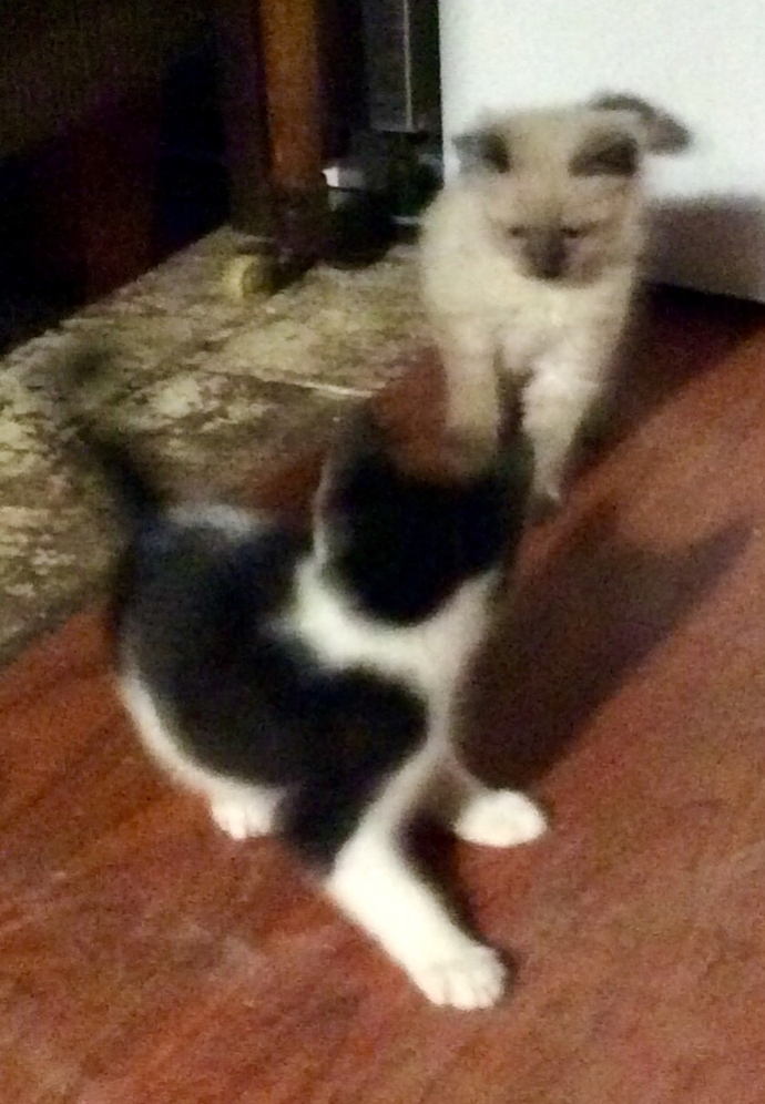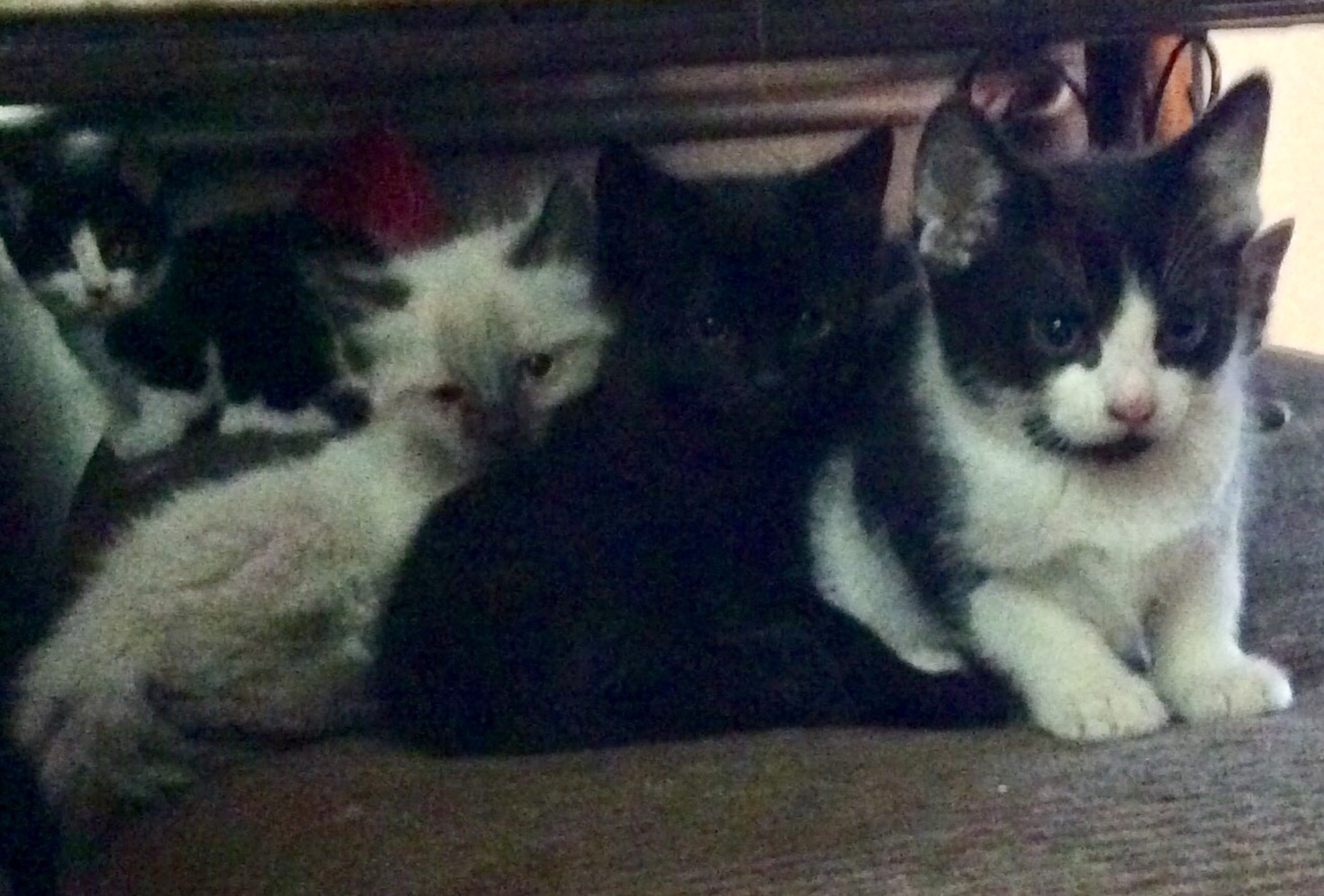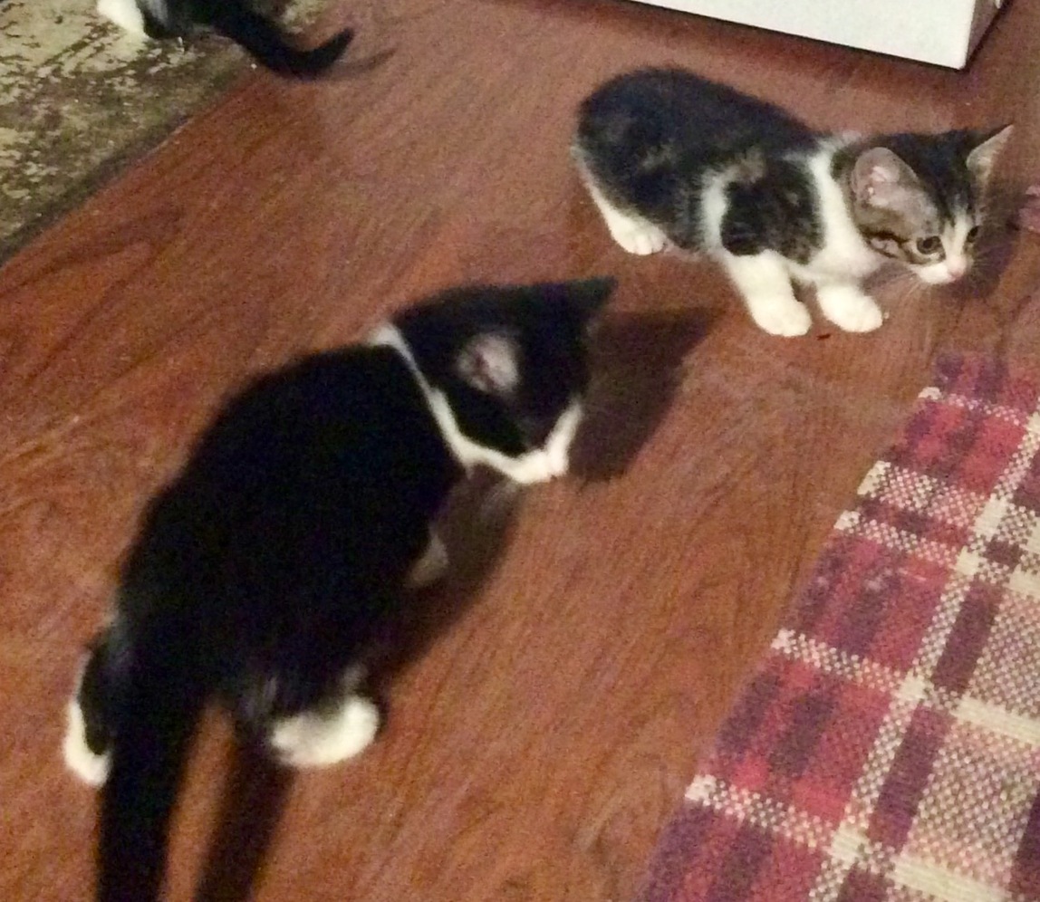 Playful and friendly, these five were born Oct 17th and are ready for loving new homes! The two black n white ones and the one all black are males, while the all white one and the tabby coated one are female. No vet visits or shots, but all are already litter box trained and are eating soft food and kibble. Serious inquires by text only please.