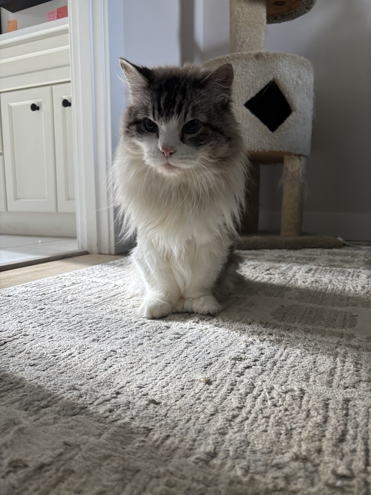 Hello, we’re looking for a home for this handsome boy, Broose. He’s an old man and looking for a loving home with no dogs. We are moving to out of state and he can’t come with us. We have only had him for a couple months and he’s not having a good time here because our dogs. They are friendly to cats but this old man doesn’t like them regardless and won’t come out of hiding unless the dogs are outside or in the garage. He’s been ok with our other cat and the kids. He’s very loving and affectionate, he has a few backup toes on each of his feet. When he does come out of hiding he loves cuddling on the couch with us and getting lots of scratches. key: ftgh