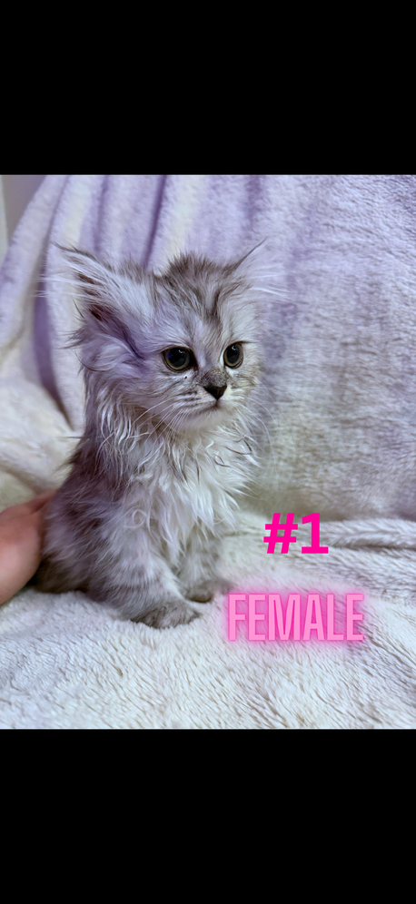 Just in time for Christmas we have a purrfect litter of 4 precious ten week old miniature kittens! Ready to go to their furever homes now! Mom is a Minuet (teacup Persian) weighing around 6 lbs. She is a beautiful Chinchilla Silver (White with silver tipping) coat with brilliant green eyes. Dad is a miniature Ragdoll weighing around 9 lbs. He is a Seal Point Bicolor with soft blue eyes. Both are on site at my home. The price is $500 firm for each kitten. There are 3 females and 1 male in this batch. All kittens have wonderful personalities with a mix of snuggly and playful. If interested, please reach out by text and I will be happy to answer questions or make further arrangements. Happy Holidays all