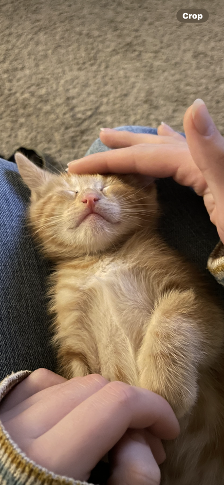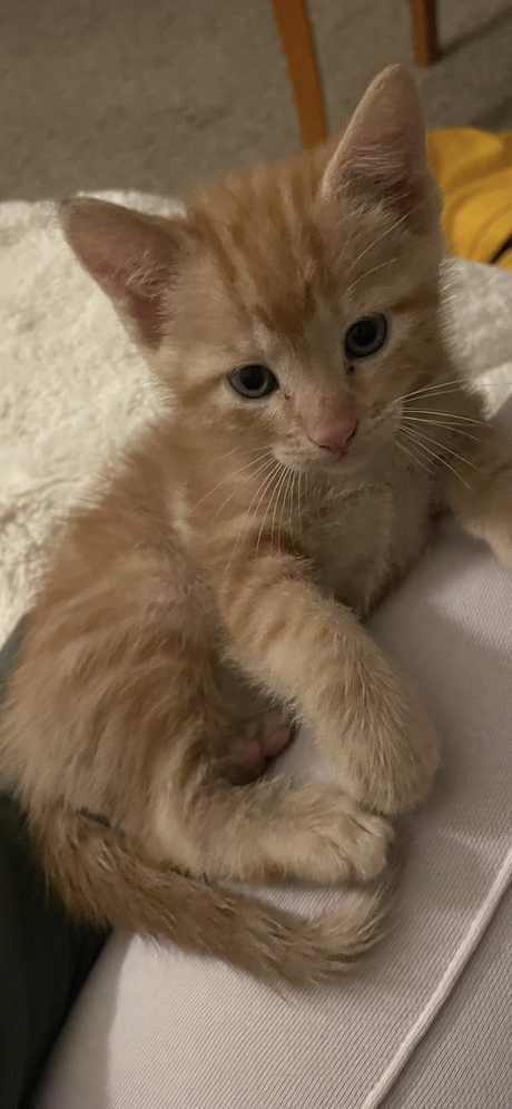 One boy left. Orange striped and super cuddly!. 7weeks old