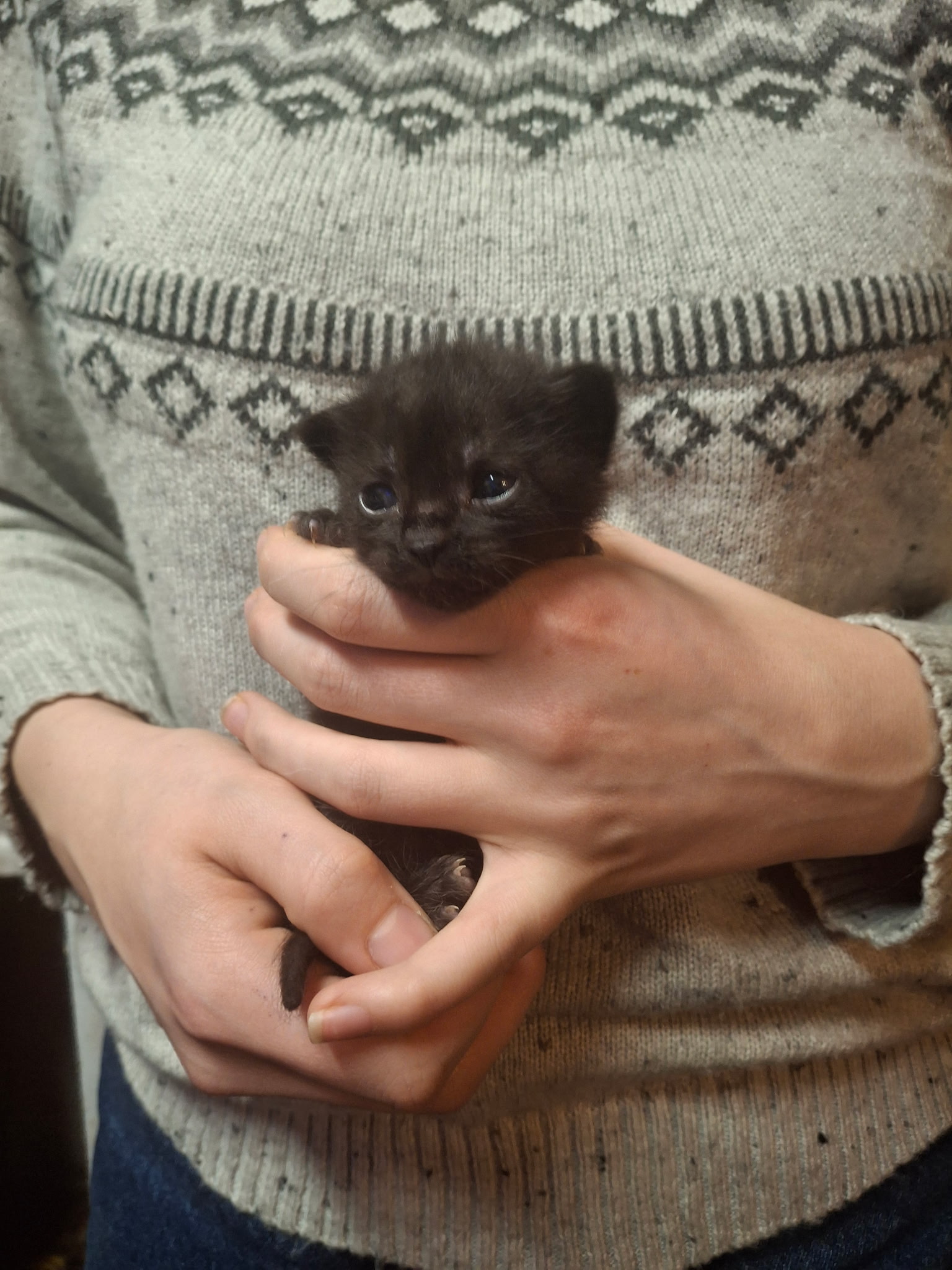 There's 3 black girls and 1 black boy and 1 orange tabby boy pending. mama is a torbie daddy is black They both have really good temperaments and like to snuggle. they'll be well socialized and have 1st shots. If you would like more pics or info. text me
