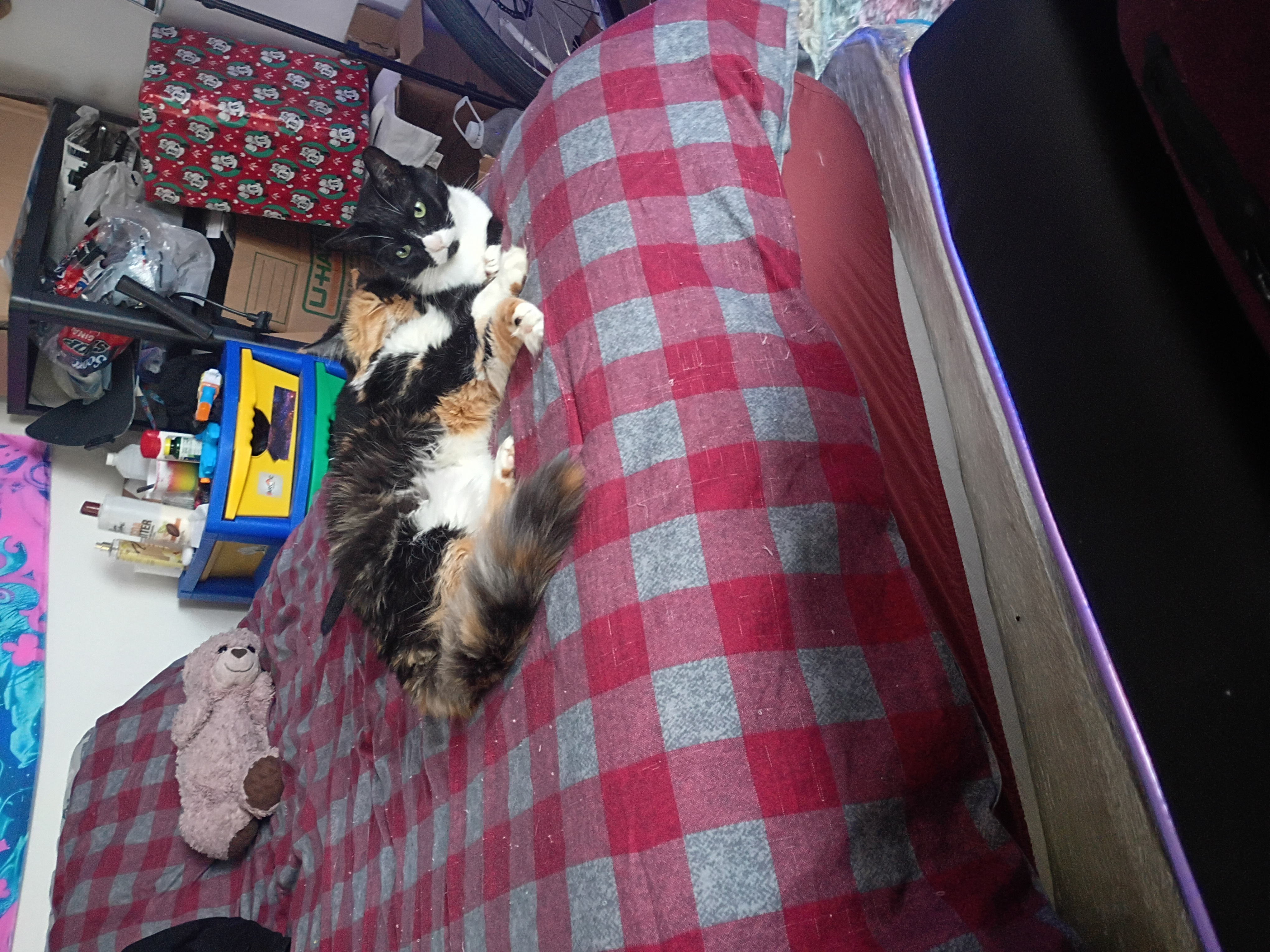 Hello this is spunk, she's 7 months old. She is an avad fetch player and a gorgeous and rare pelt. She came from my best friends cats. She is fixed and up to date on shots. I am going back to college and traveling so I am rehoming all 3 of my cats. She is a huge sweetie pie. She has never bit or scratched me. She is curious and ofc potty trained. Basically the perfect cat. She comes with a carrier and tons of toys. She's friendly with my other two cats at least. I don't think she would have a problem with many cats. I prefer text first. I don't feed her corn or wheat. She's my dream cat so hopefully she can be yours too.